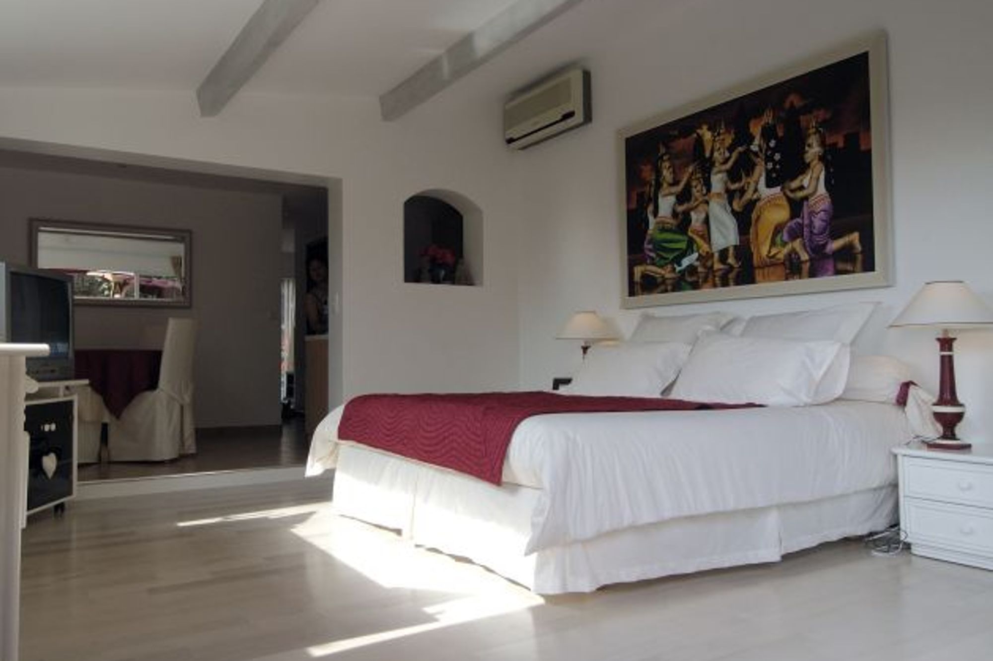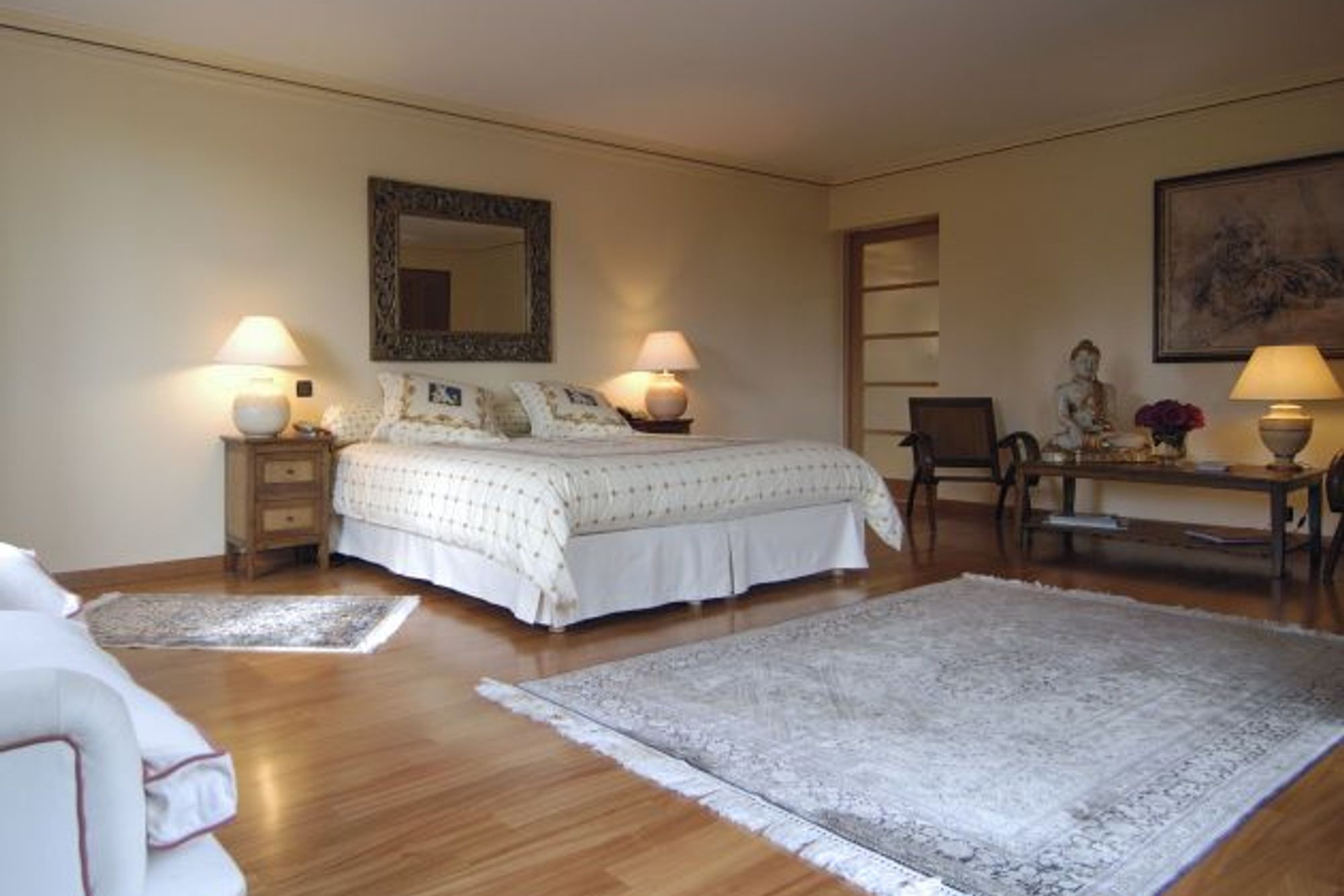 A delightful property located in the prestigious neighborhood \"Super Cannes\" with large grounds and sea view. A well decorated and spacious property. Open living room with a separate dining area, access to terraces and pool area. Piano and fireplace in the living room. Professional kitchen with top of the range appliances (Gaggenau), leading out onto a small terrace with a dining table. BBQ. Each suite has its personal bathroom, plasma screen, safe, telephone line and mini bar. There are three bedrooms on the ground floor, one suite on the first floor, with a private terrace. The remaining three suite have all an independent access from the exterior. Air conditioning throughout. Wireless internet connection. Satellite television with over 1500 channels. Heated swimming pool and Jacuzzi. Hammum and spa. High security. Alarm, cameras surrounding the property. Live in guardians. Space for up to 20 cars in the car park. Possibility to hire in house chef, babysitter and chauffeur.