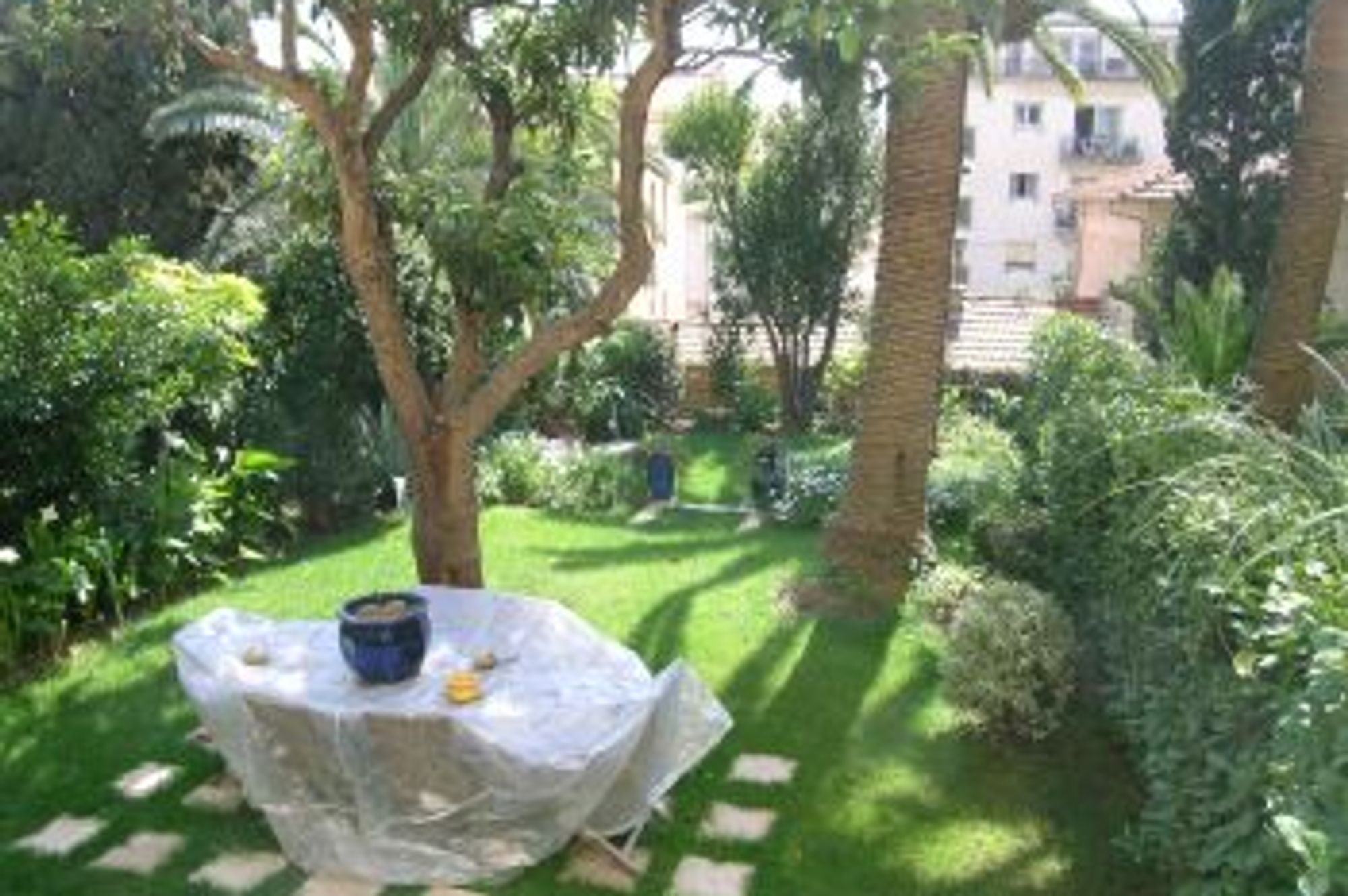 A beautiful apartment, recently renovated and decorated with modern furniture, located in the heart of Cannes, and a 10 minute walk to the palais des festivals. The apartment is made up of a spacious living room with a fully equipped american kitchen, opening onto a garden. Two double bedrooms, one bathroom equipped with a hammam shower. Real garden in the heart of Cannes.