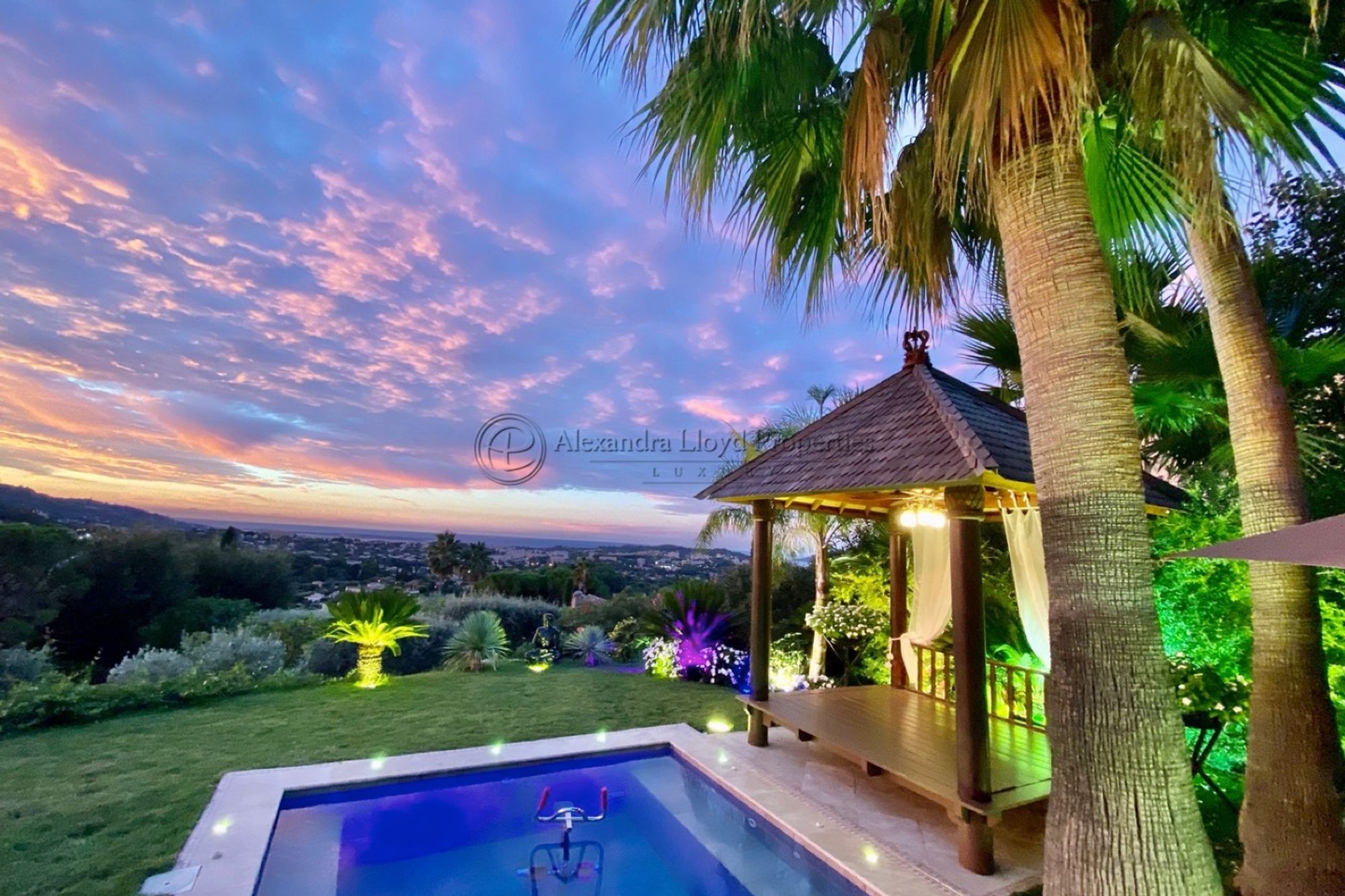 Located very close to the Old Village of Mougins, this magnificent property offers stunning views over the hills of Cannes, the Lérins islands and the Esterel mountains.