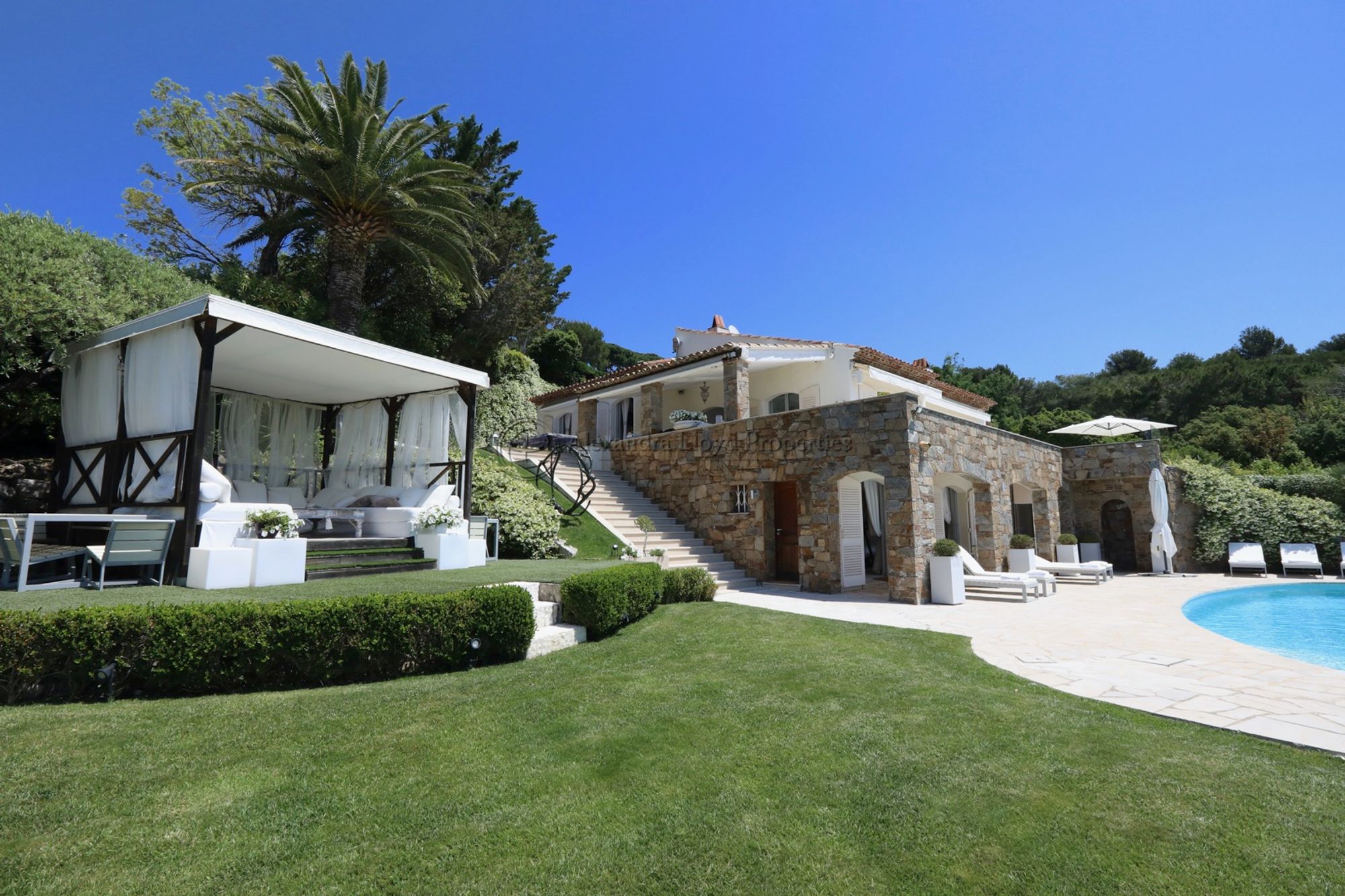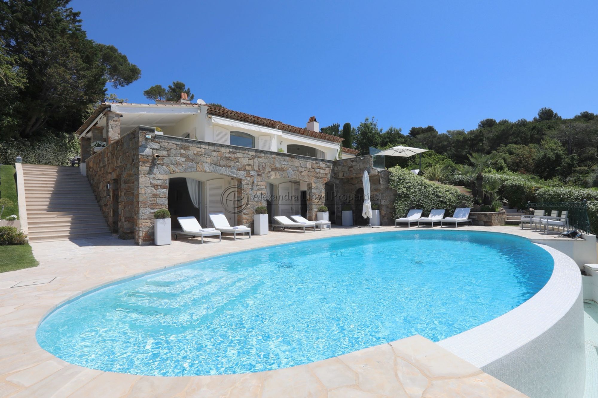 Stunning villa in the charming privateDomain Cap Tahiti, offering superb views over thePampelonne bay. With six bedrooms in total, the villa provides ample space. Three bedrooms are located on the top floor, each with access to the terrace and pool area, while the other three are on the pool level, including a self-contained studio. Every bedroom is equipped with flat-screen TVs and DVD players.
