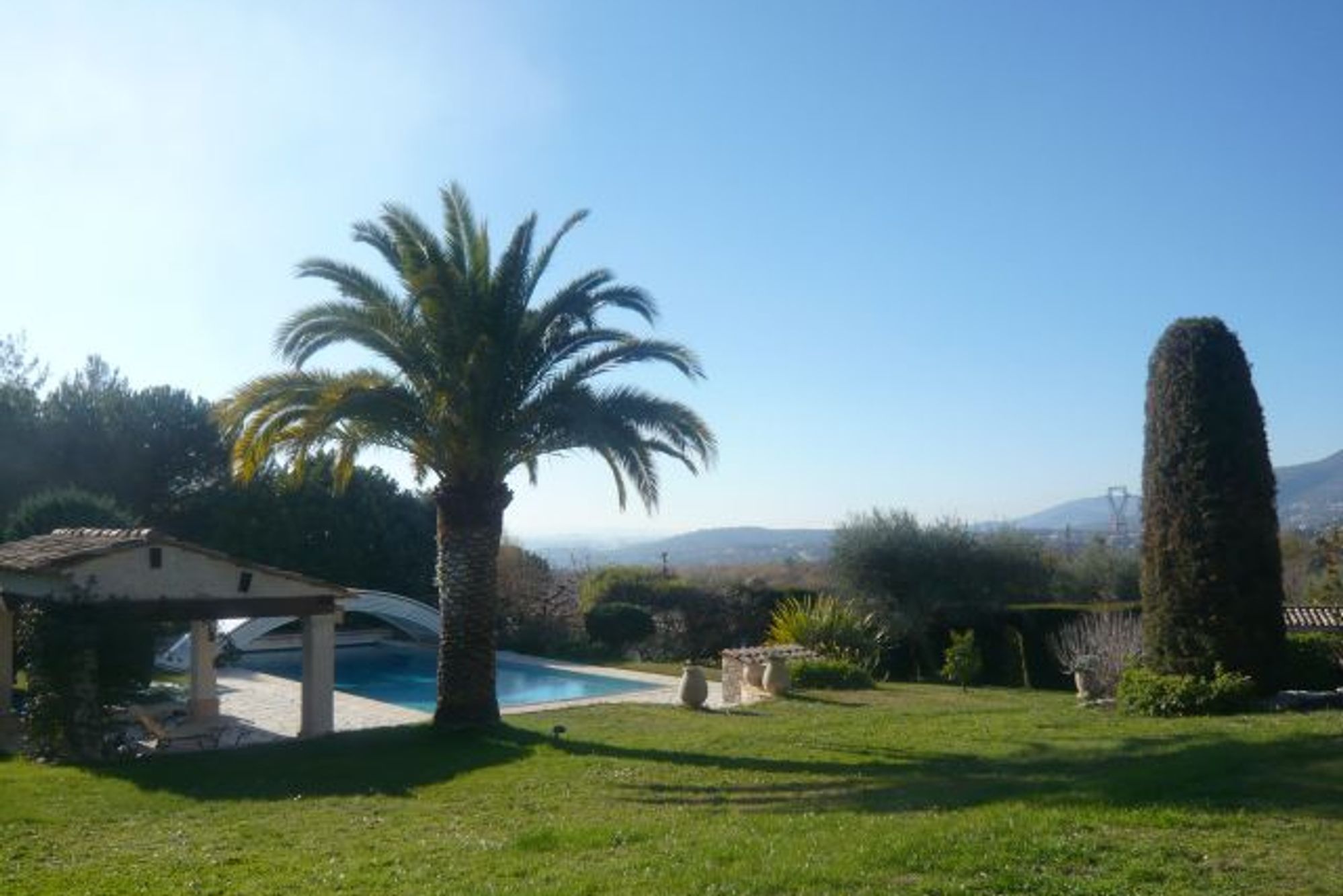 A very charming Provencal style property situated on the outskirts of in La Gaude, just a short drive from Vence. The villa has approximately 500m² of living space within 7500m² of groomed grounds with Mediterranean fruit trees. Several terraces (one of which is fully covered). Fully equipped kitchen. Three bedrooms in the main villa. A two bedroomed guest house is to be completed in 2008. Large swimming pool (12x6) with a child security cover. 25 Minutes from Nice airport. Wireless Internet connection, fax machine.