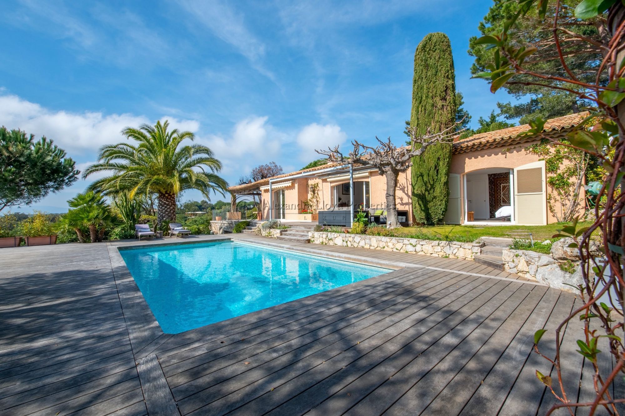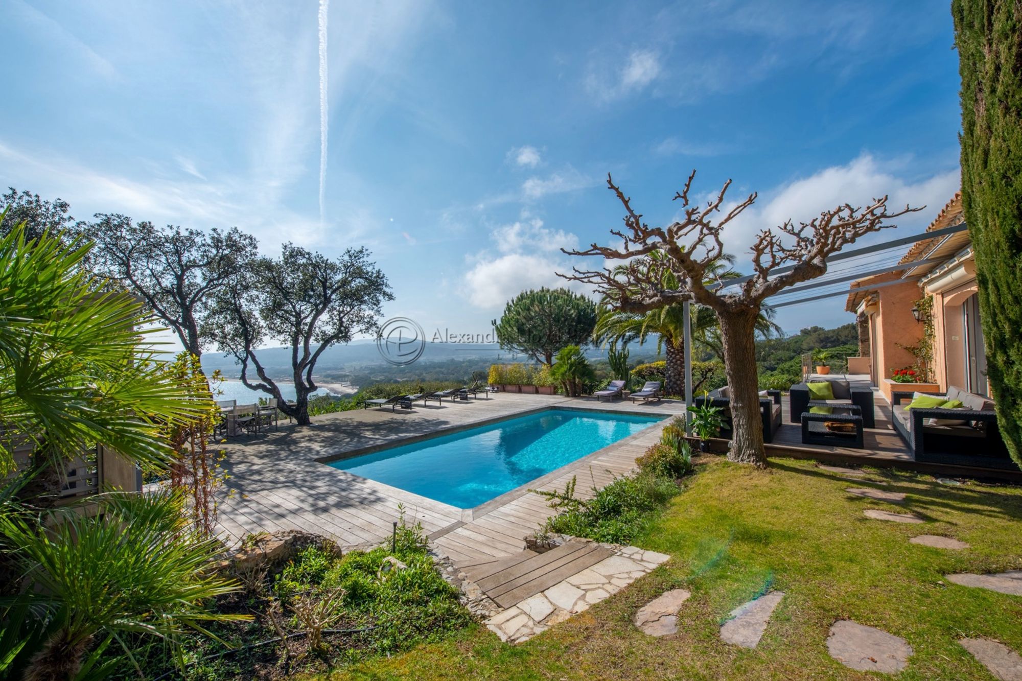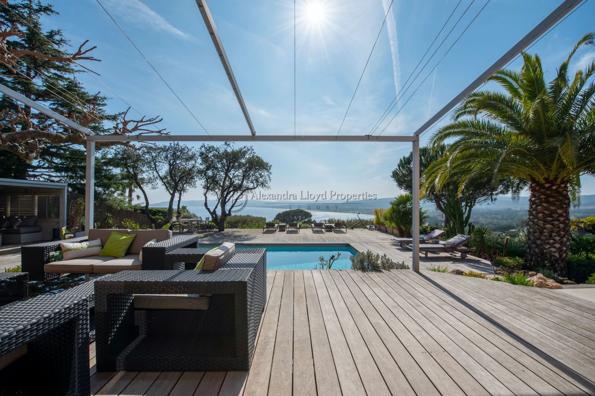 Located in the prestigious private domainCap Tahitithis villa offers stunning views and a direct access by foot to the famous Pampelonne beach and the sea