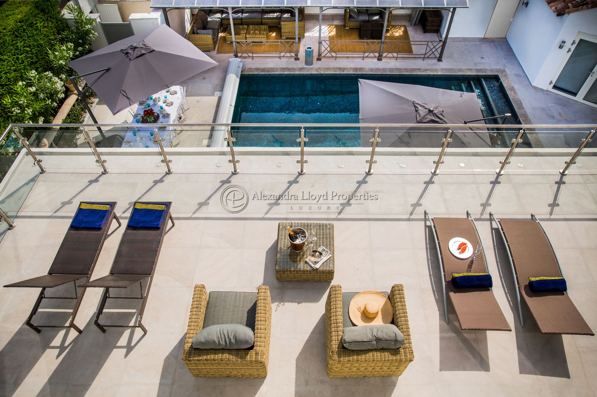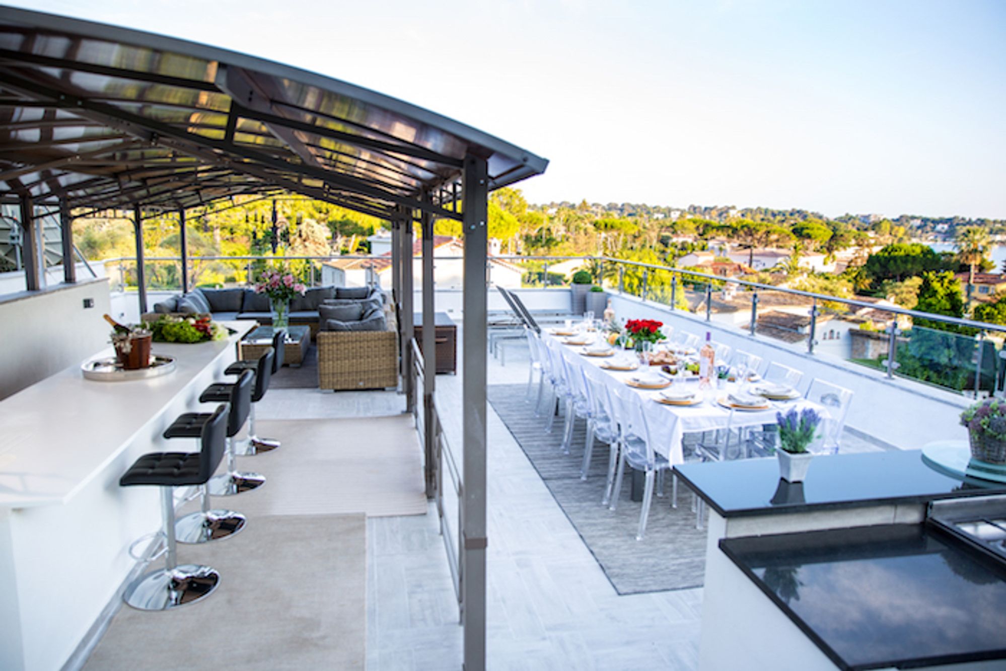 - Roof terrace with the most stunning sea views. This al fresco space includes dining facilities, evening entertainment areas for up to 14 people and a gas cooker, stove and fridges.