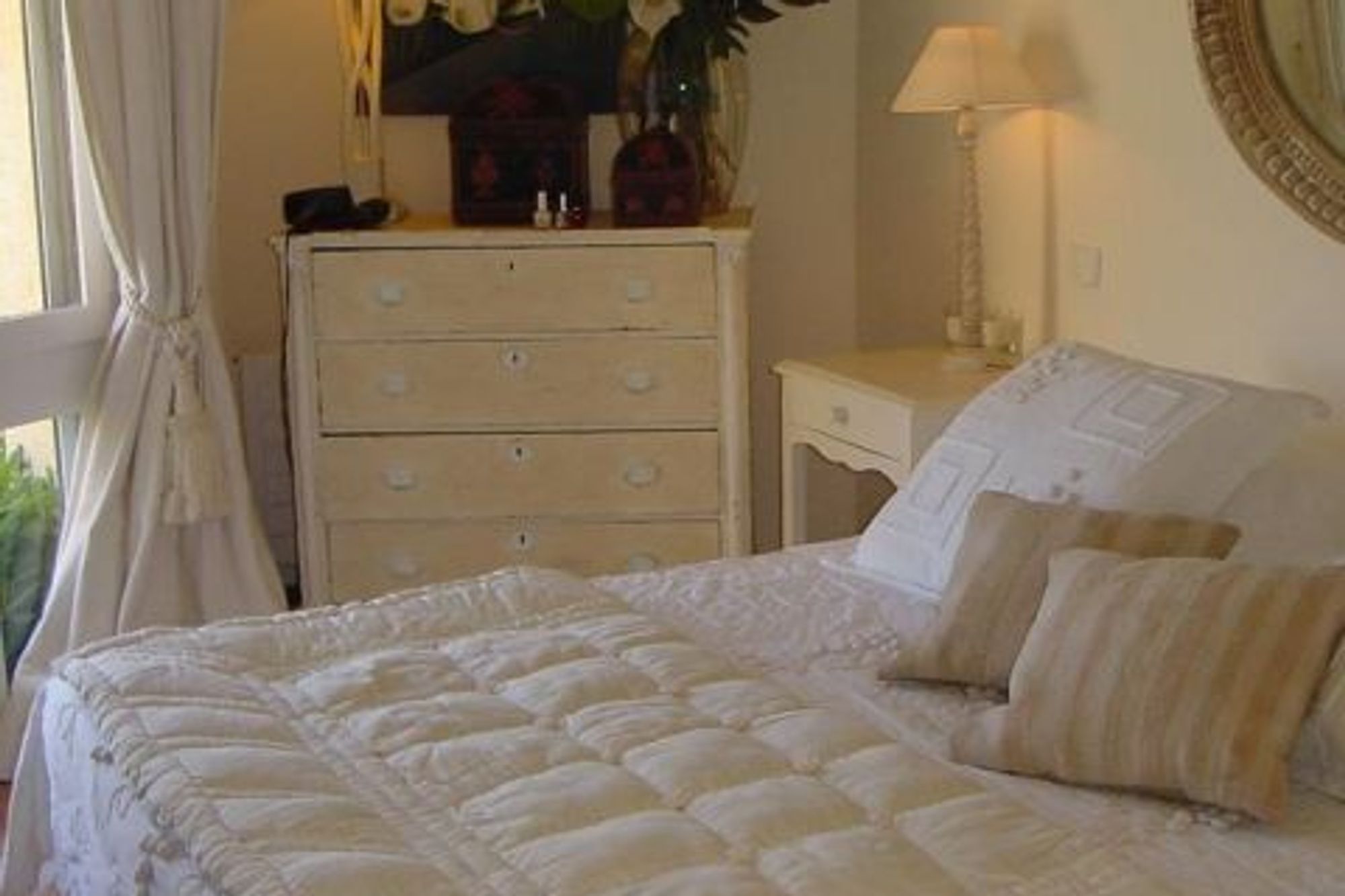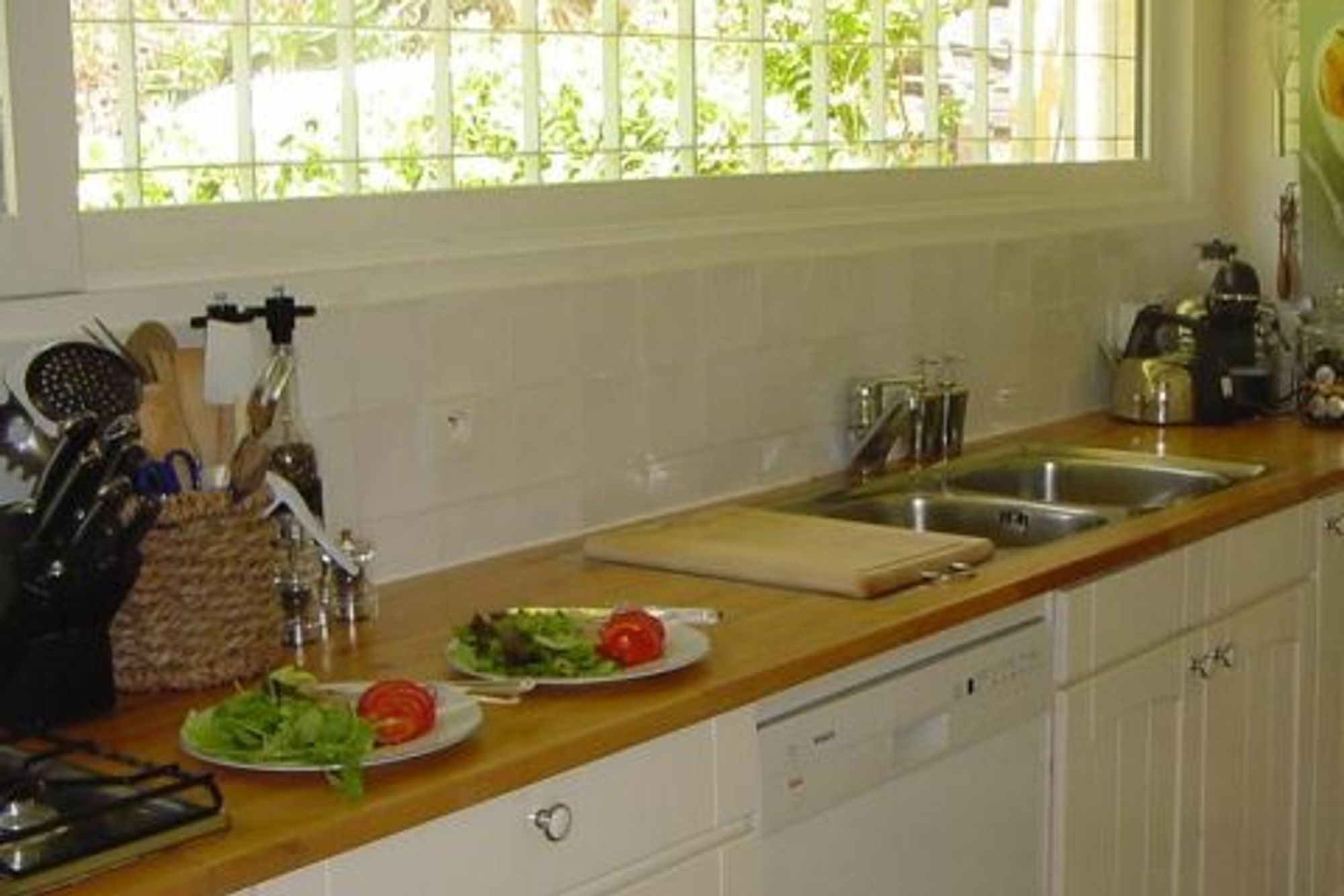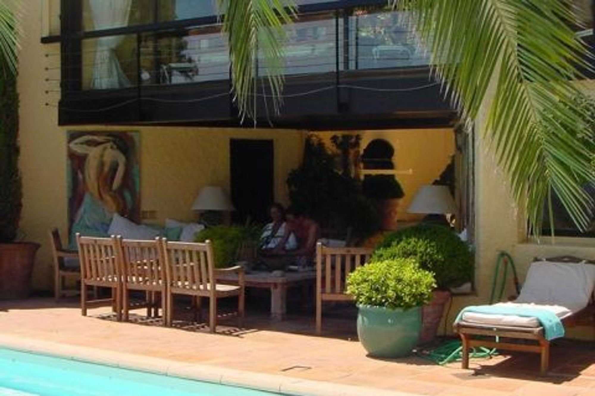 This gorgeous villa, situated in one of the most beautiful quarters of Ramatuelle, called \"Domaine de l'Escalet\", is offering you a breathtaking panoramic view of the blue-green sea. The beach is just 100 m away and to the well known beaches of Saint-Tropez like Club 55, Pampelonne and Nikki Beach, is only five minutes away by car. Situated in a somewhat 'tropical' garden with huge palm trees, Villa Le Chançard has been furnished in a very tasteful style, which makes you feel at home right away. The large living room has a fire place and give access to the lovely living terrace outside, joining the large swimming pool terraces. Furthermore you find a dining room inside and the well equipped kitchen. The master bedroom, air-conditioned and with a dressing, has its own bathroom with a bathtub. The other three double bedrooms have a stall shower each, as well as air-conditioning and satellite TV. There is a separate laundry room.