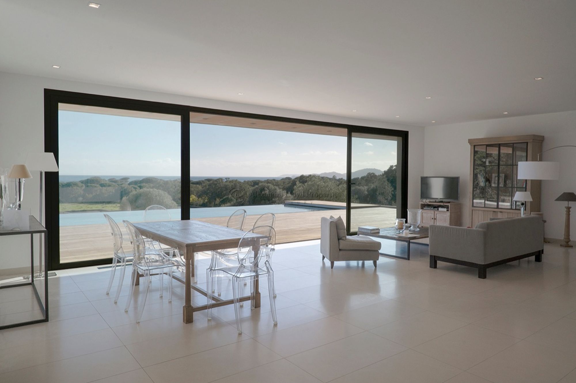 Completed in 2014, a five star position, walking distance to one of Europes most beautiful beaches - 300m. Stunning 180° sea views. On one level, open plan living area with an American kitchen. Four bedrooms with two shower rooms and one bathroom. Fully air-conditioned. Over flow swimming pool - 14x4m. Wifi, satellite television channels. 100m² garage. With special thanks to Paul Larrieu Photography