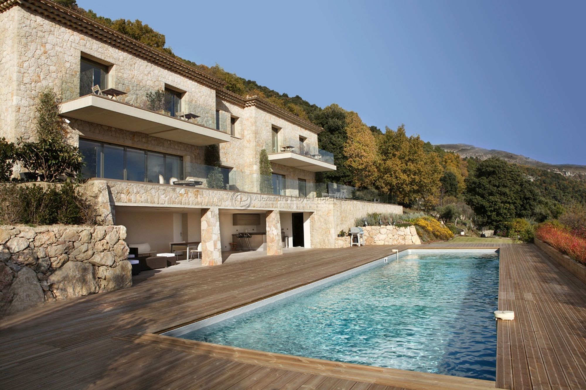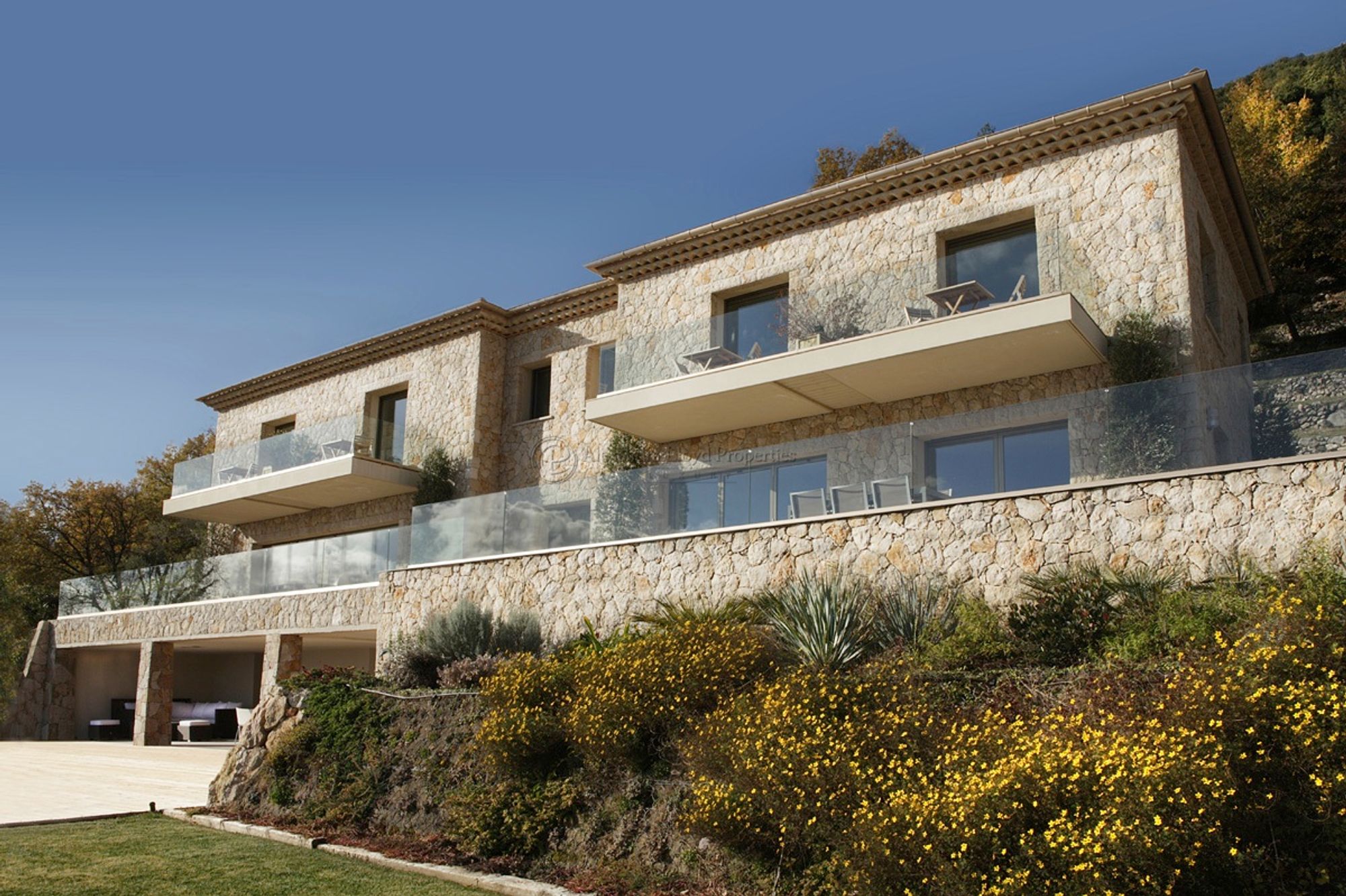 The property offers 600 m² of living space and stands on a site of 13 000 m² of stone terresses and landscaped gardens.