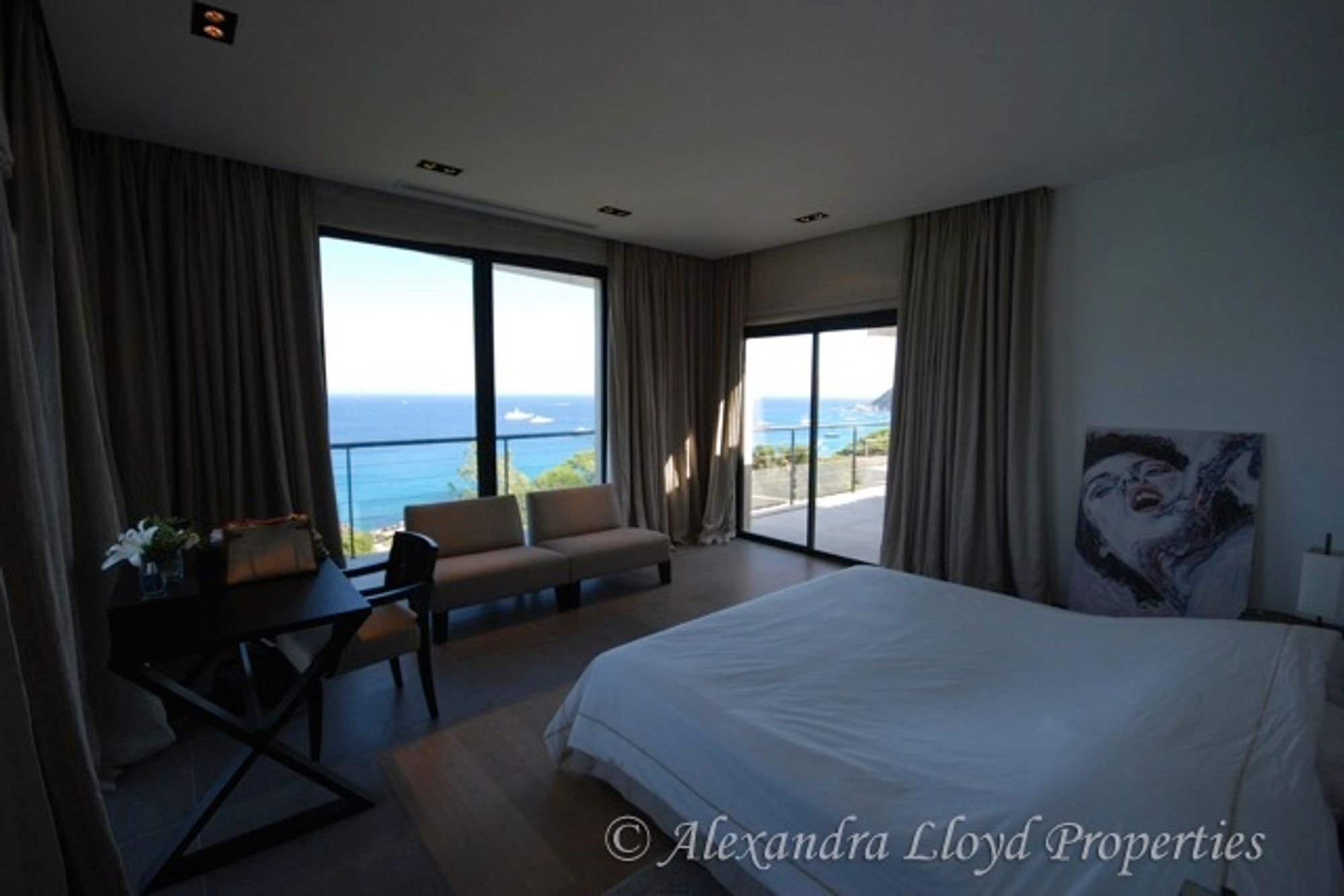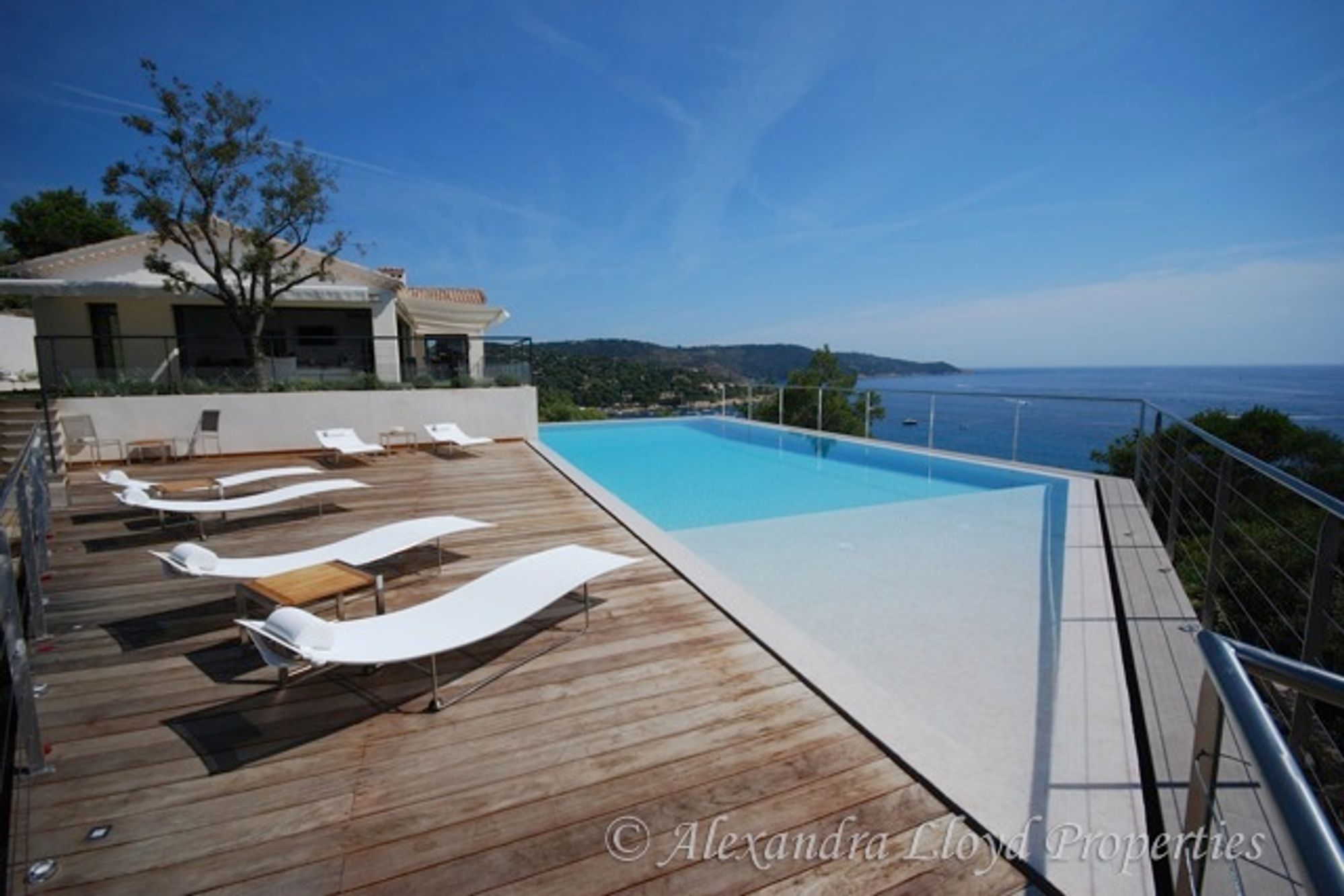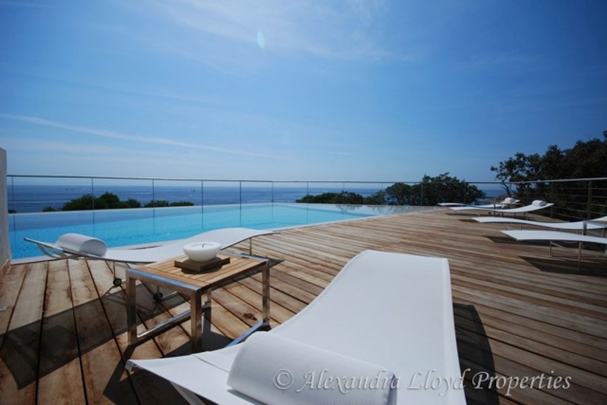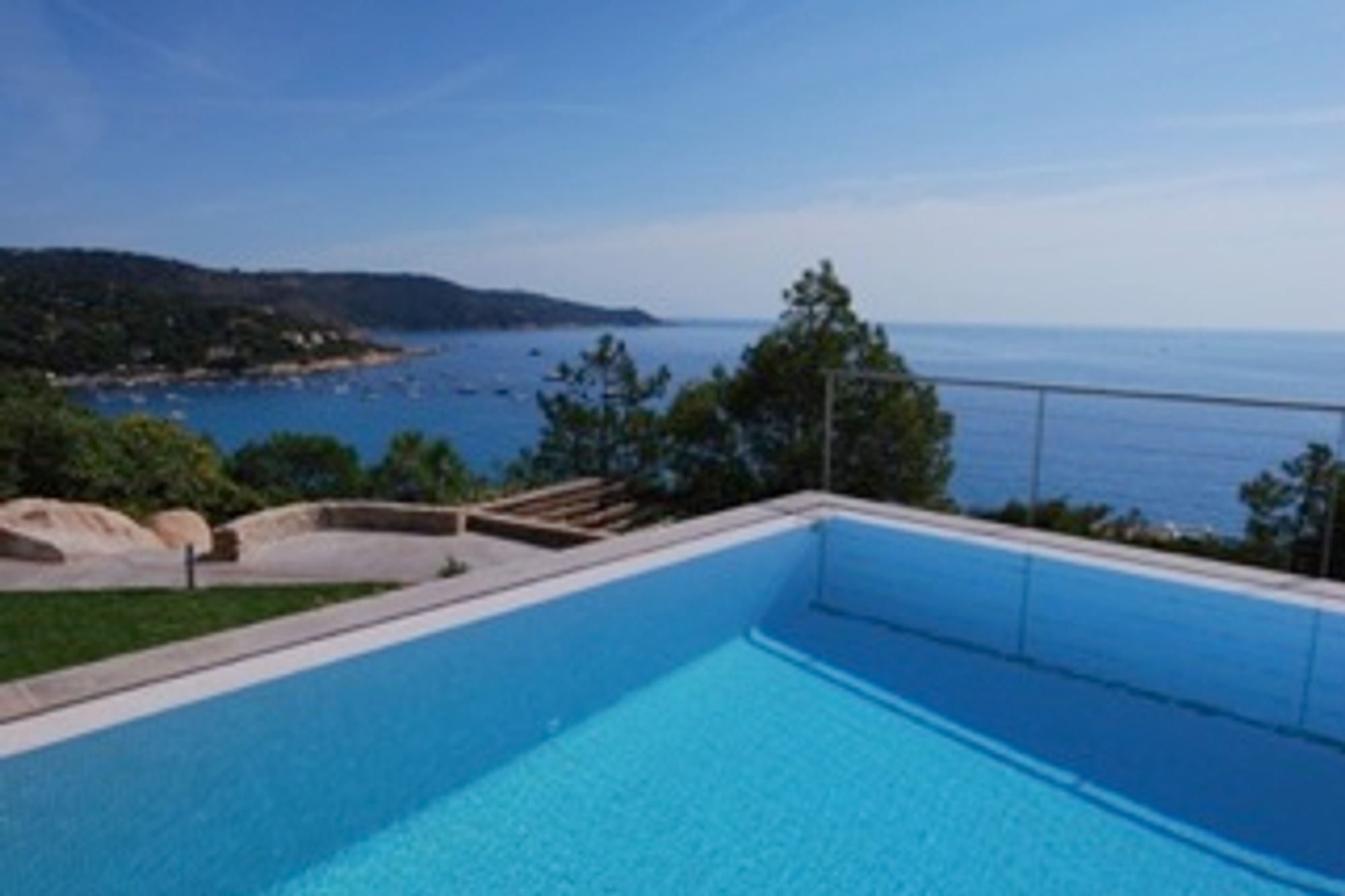 Contemporary villa situated in the sought after area of l'Escalet in Ramatuelle close to the village and the Pampelonne beaches. A lovely 15 minute drive to Saint Tropez, no traffic. Wonderful sea views and overlooking the Bastide Blanche. Stunning garden, with Mediterranean essences, overflow swimming pool and sea views. Garden level: Entrance hall. A double bedroom with a shower room and private terrace. Sea view. Two bedrooms which communicate with each other, private terrace with bathrooms. Sea views. First Floor: A large living room with floor to ceiling windows which lead onto the terrace. Dining room seating up to 14 people. Small pool for children. Summer dining room with bar! Designer kitchen made out of white Corian, and a wine cellar. Master bedroom with bathroom and shower room, sea view. Guest bedroom with en-suite shower room.
