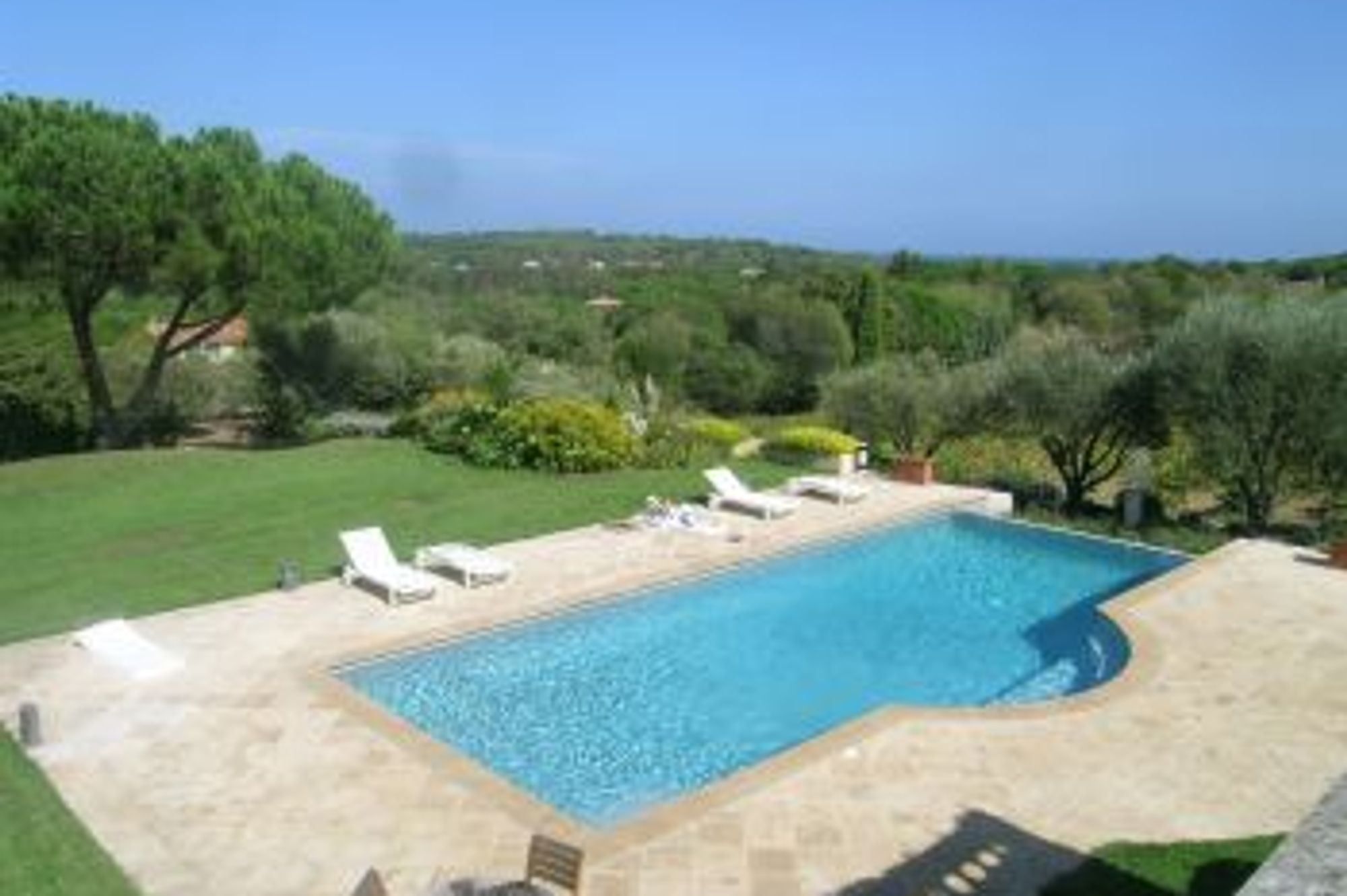 Located in the hills of Saint Tropez, this elegant property is surrounded by five acres of vineyards. This 350m² villa is restored and furnished according to local Provencal spirit but also contains distinctive modern styles. On the ground floor, a lovely living room with fire place. A beautiful dining area in a large veranda with original wooden beams. A fully equipped and modern kitchen. On the first floor, two bedrooms with adjoining bathrooms. A study. An extra small single bedroom (for staff). On the ground floor, a further two en-suite double bedrooms, both rooms having their own access via the garden of the property. Pool house made up of a modern kitchen, a shower room and one double bedroom. Garage for 6 cars. Three outside terraces (100 m²) and a shaded veranda for hot summer days. Air conditioning in all ground floor rooms. The entrance is an ancient stone paved courtyard. The panoramic view stretches South to North from the open Mediterranean sea to the gulf of Saint Tropez. Chlorine free swimming pool (13x5). Entirely gated with alarm system and security intercom. Satellite TV, DVD player and plasma screen. Close to the beach of Les Salins, 2 km away from the village of Saint Tropez.
