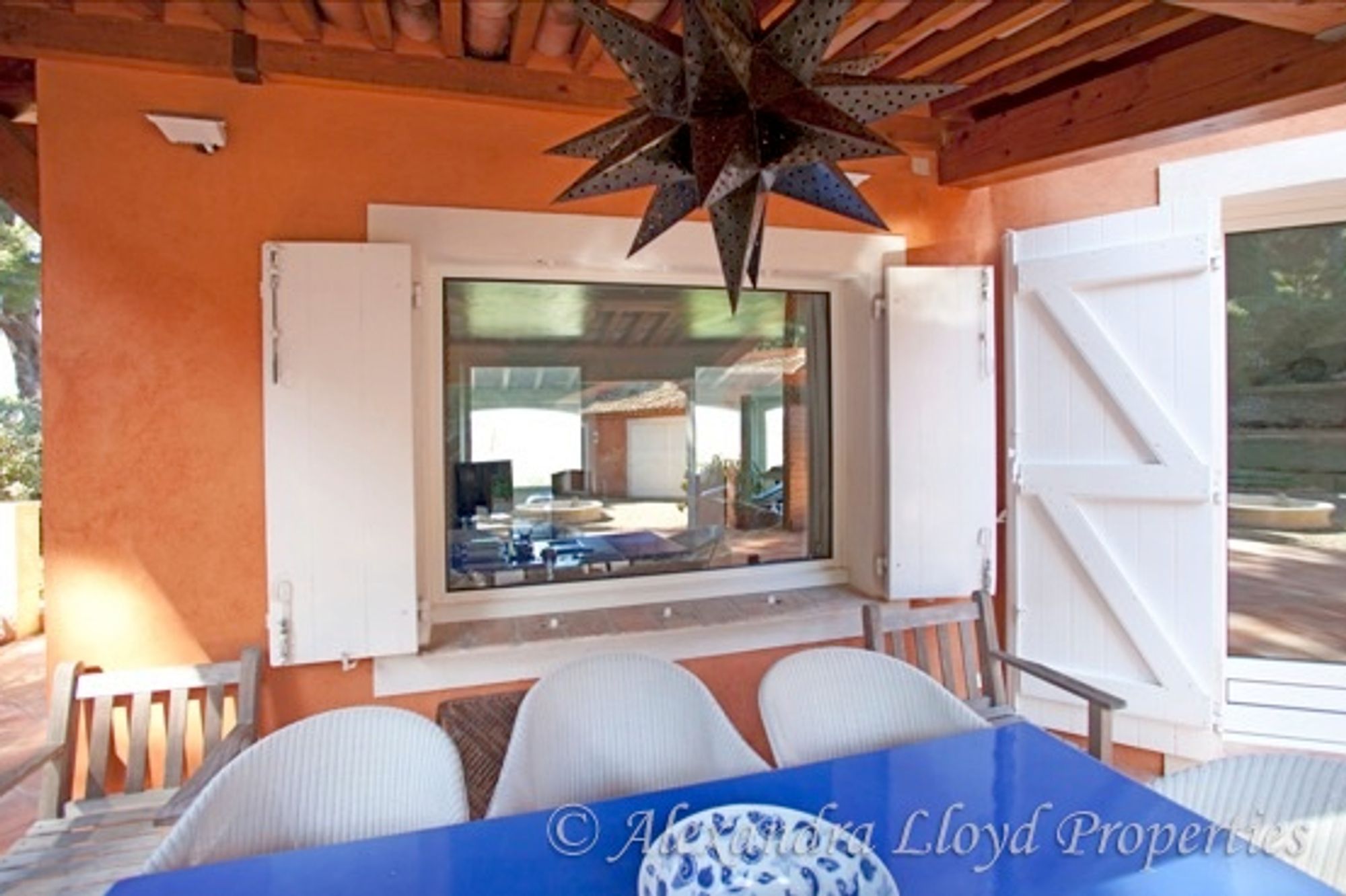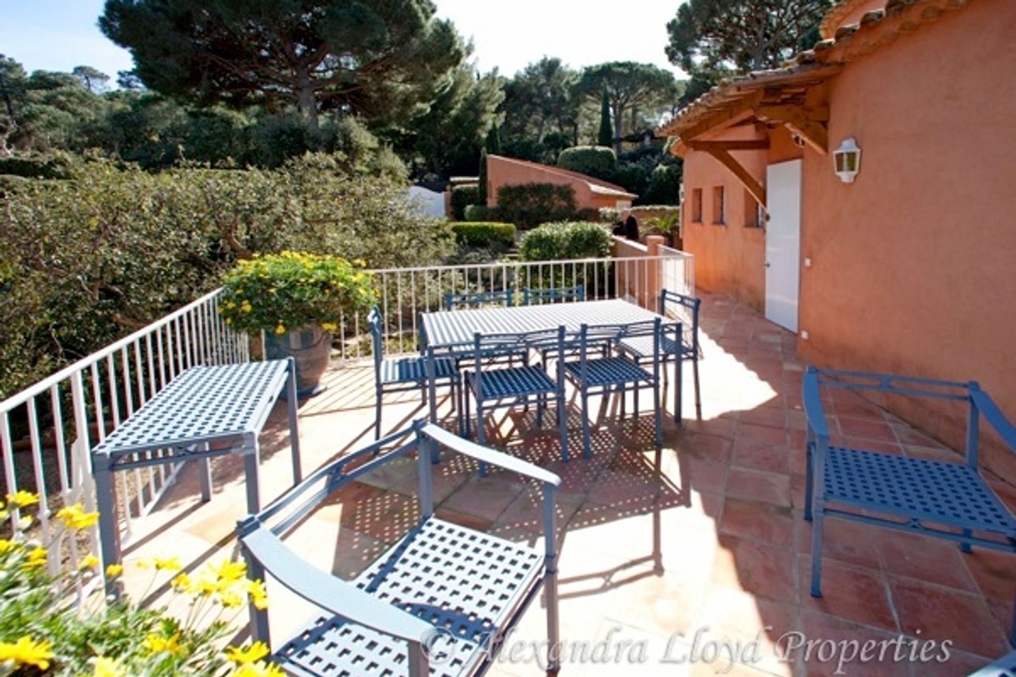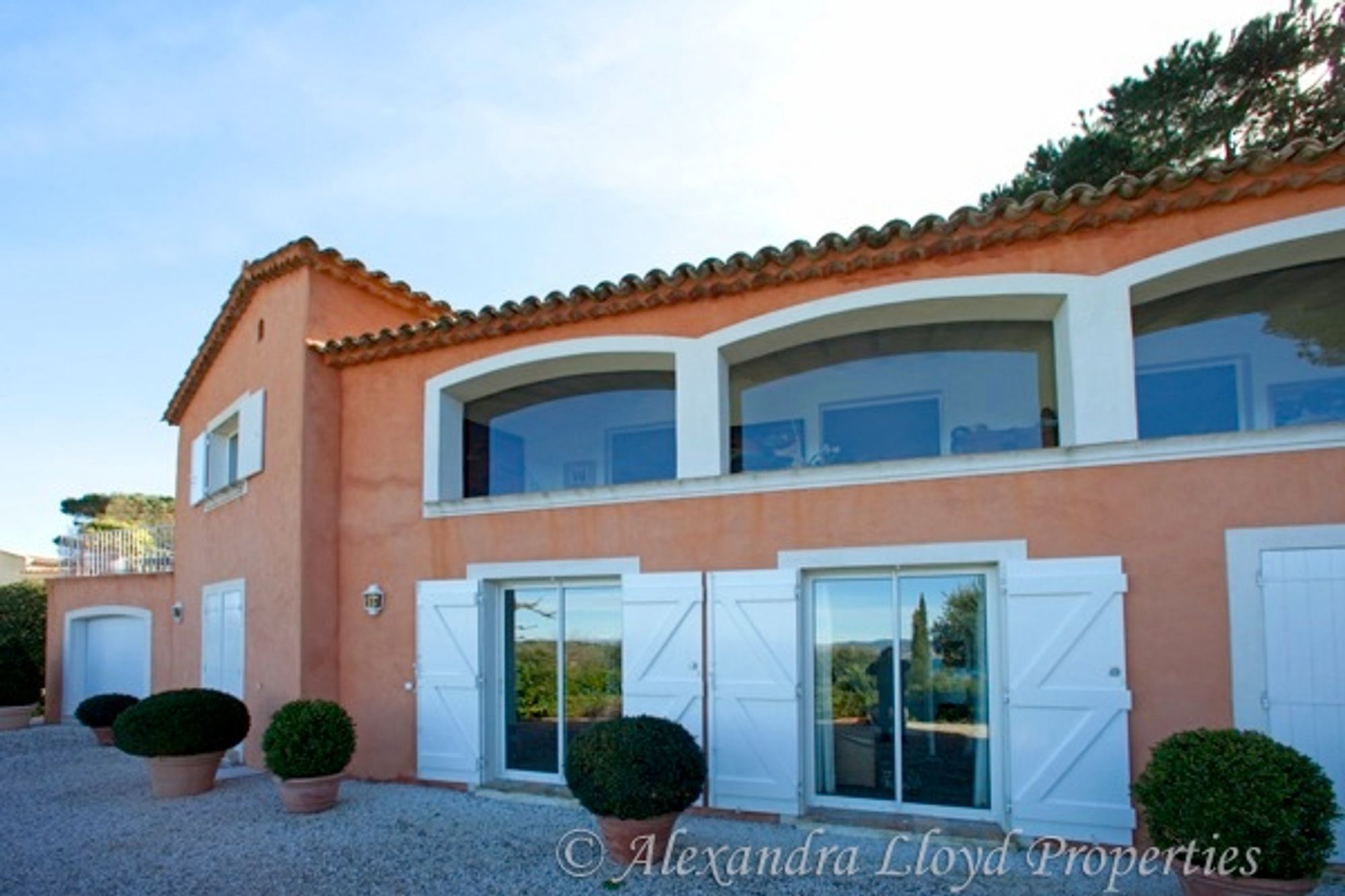 Exceptional property located on the commune of Ramatuelle, 500m from the Escalet beach and 1 km from Pampelonne. Designed by a famous architect of Saint Tropez, this rare and elegant house offers very high quality amenities. This property is located in a secured domain, with view over the Alps right up to the Mercantour and hills behind Nice. One level house with a living surface of 360 m²: Large entrance Living room of 80 m² (splendid framework with a 6m height under ceiling). Dining room under a veranda. Kitchen. Six bedrooms with six bathrooms. Office. Very beautiful paved courtyard and multiple terraces (each bedroom has its own). External dining room sheltered by a « ramade Large 50 m² living room with terrace. Laundry room. Garage. The garden of more than 3000 m² is entirely planted with rare Mediterranean species, including 50 tercentenary oliveâ€trees; many palm trees, multiple fruit trees (orange trees, lemon trees, fig trees). Swimming pool.