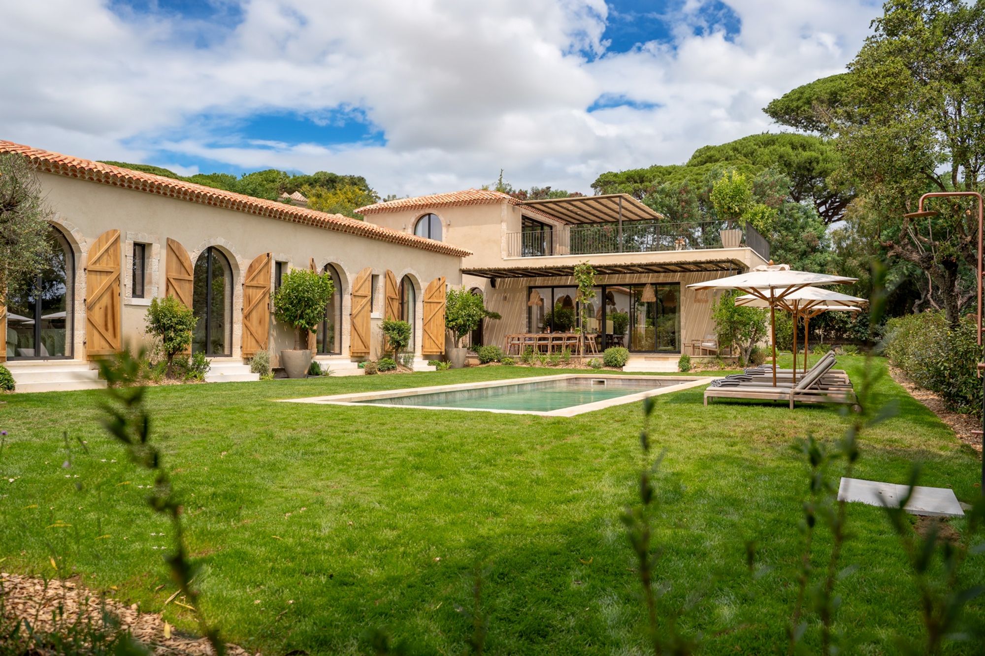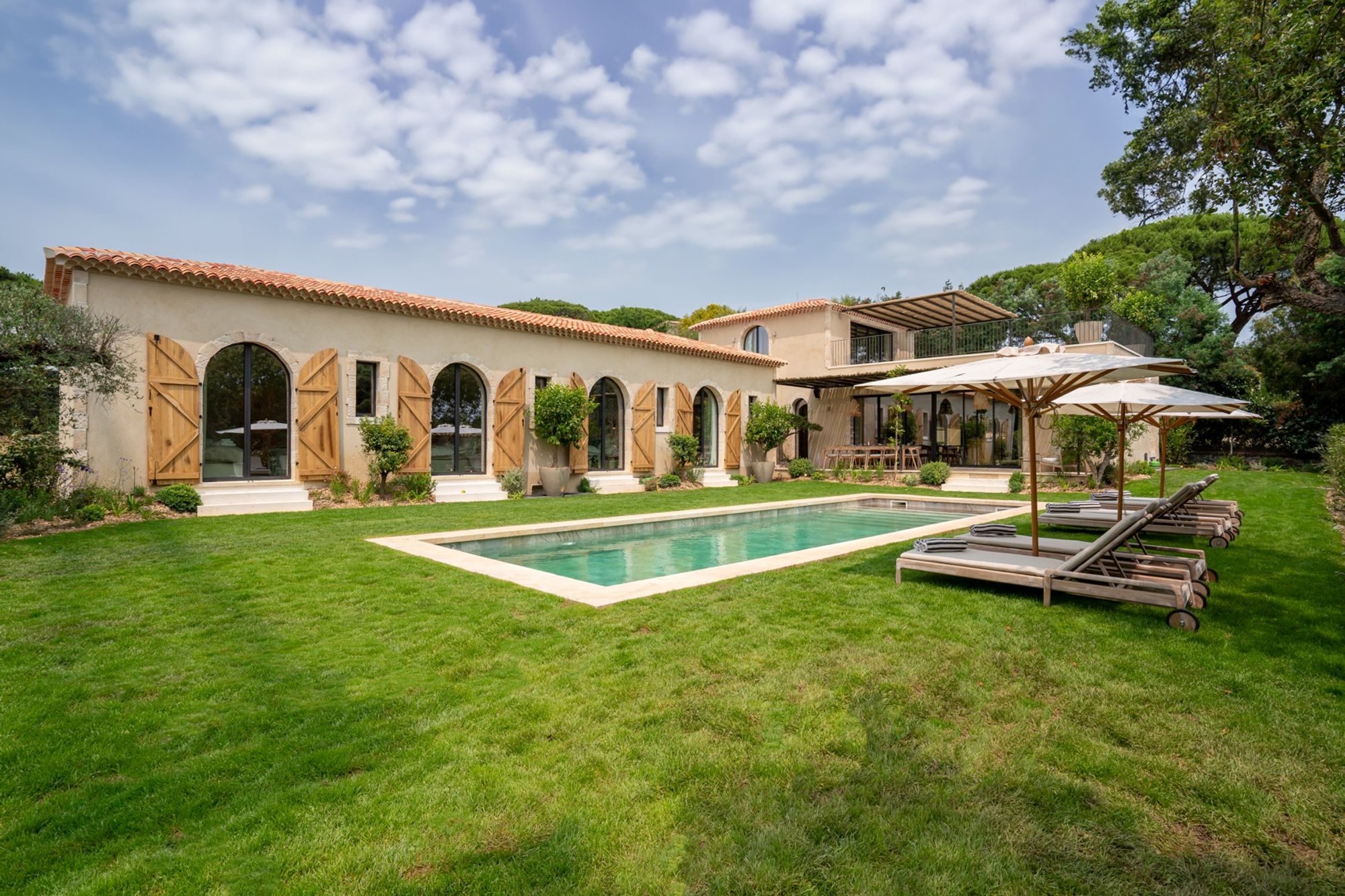 Nestled in the prestigious Pampelonne area, this breathtaking six-bedroom luxury villa seamlessly fuses the timeless elegance of a traditional Provençal exterior with sophisticated, contemporary interiors designed for ultimate comfort.
