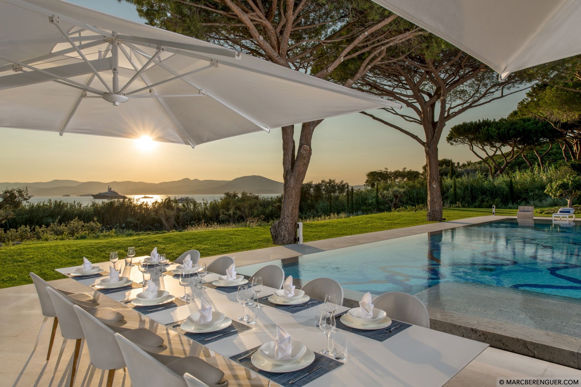 Situated in a coveted position overlooking the Bay of Saint-Tropez, facing the citadel, with captivating sunset views and walking distance to the sea.
