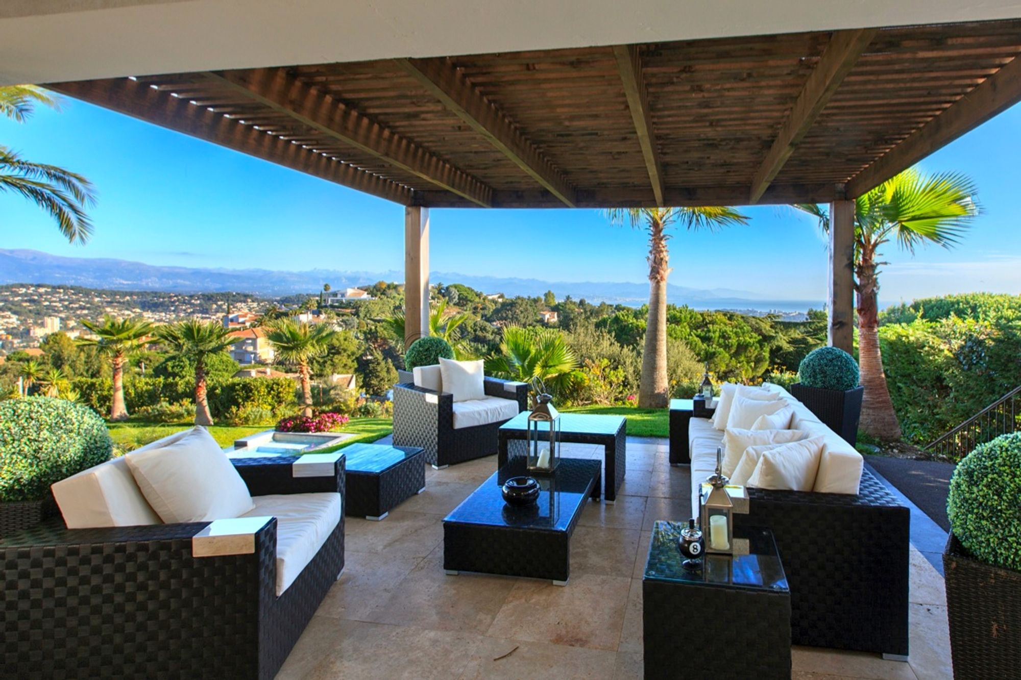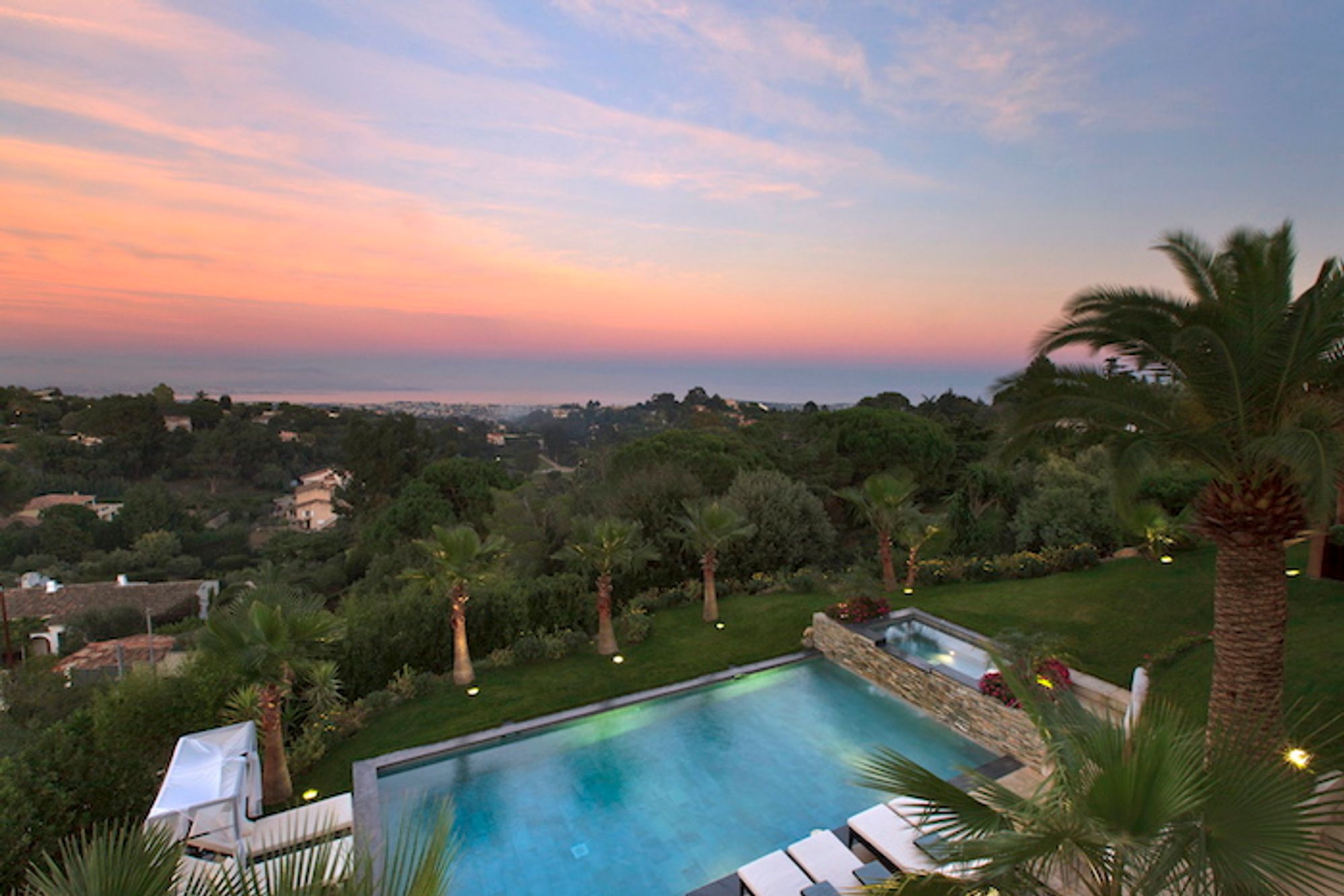 Located in the hills of Cannes, this newly renovated property offers close proximity to the town in a quiet neighborhood.