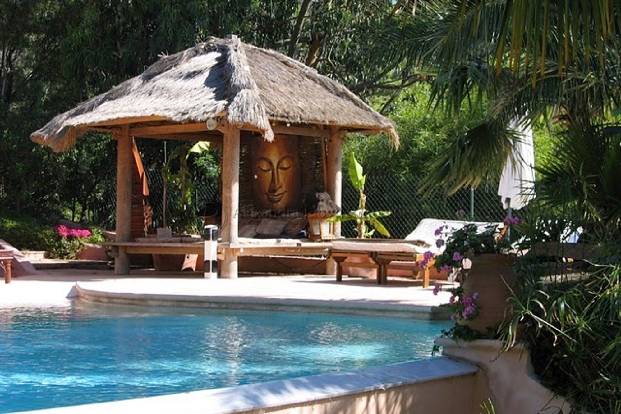 - Lovely swimming pool area, with a heated spa and a fountain.