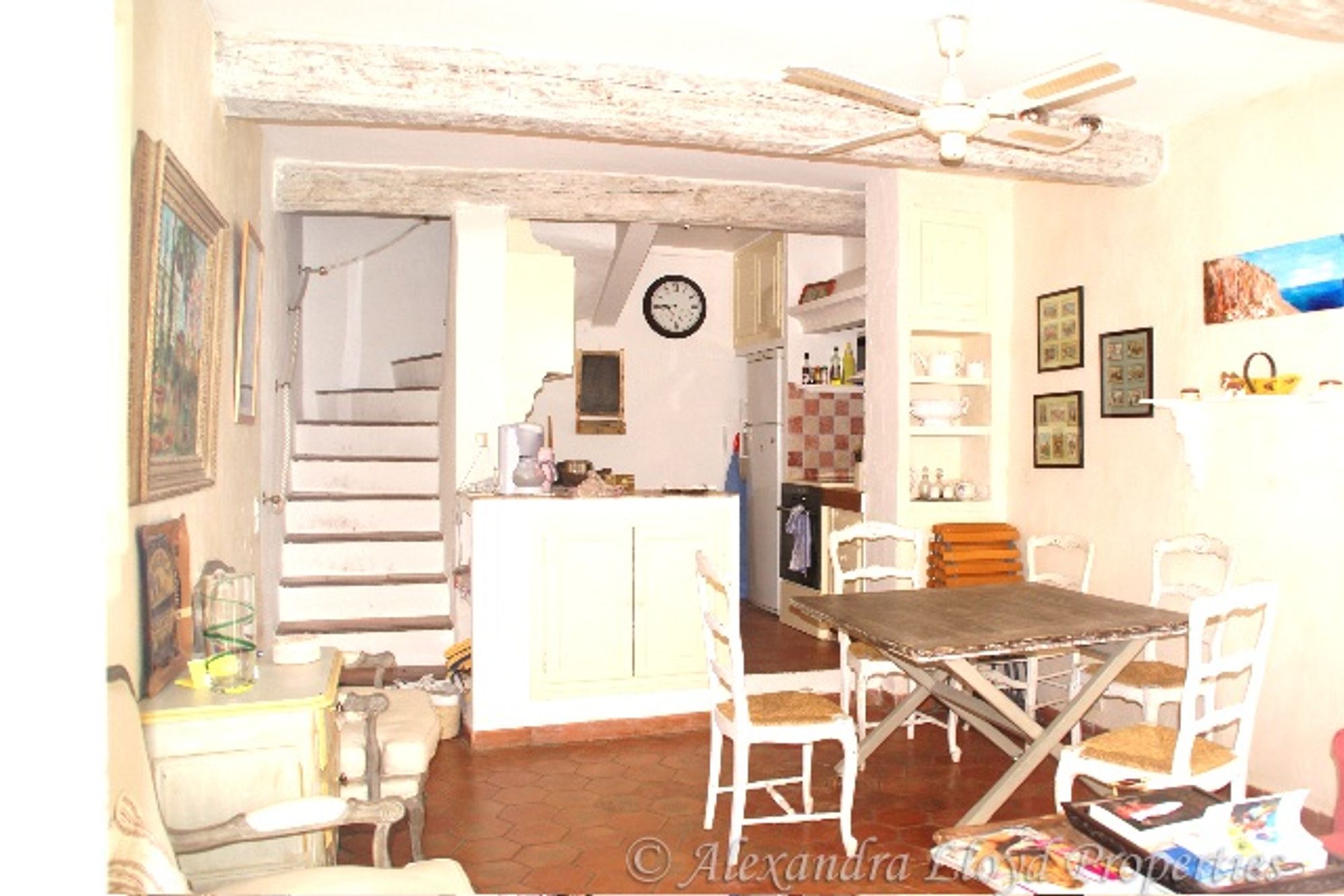 In the heart of the village of Saint Tropez House village on 3 levels which is composed of Ground floor: A living room, kitchen, dining room First floor: A double bedroom with shower-room Second floor: Master bedroom with bathroom Third floor: An under slope bedroom with a skylight
