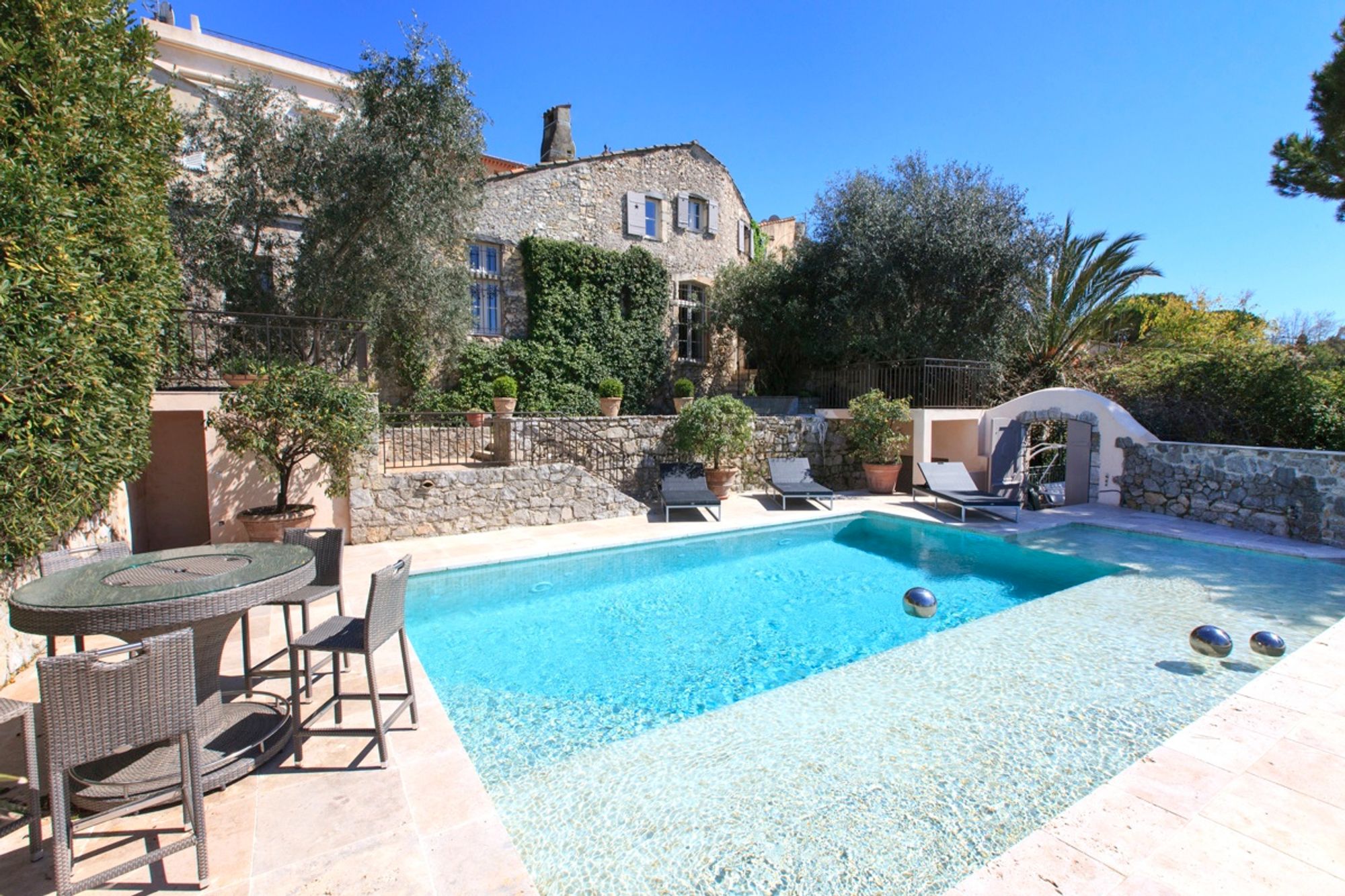 A stunning 17th century, recently renovated luxury mill located in the heart of Mougins with lovely views over the countryside. The Mill offers the following lay out: Entrance hall Double living room. Dining room. Large master suite with bathroom and dressing room. On the first floor: Four en-suite guest bedrooms. An indépendant studio. Swimming pool with summer kitchen. Gym and cinema room. A private funicular servicing all levels. Fully air conditioned. Alarm. Wifi.