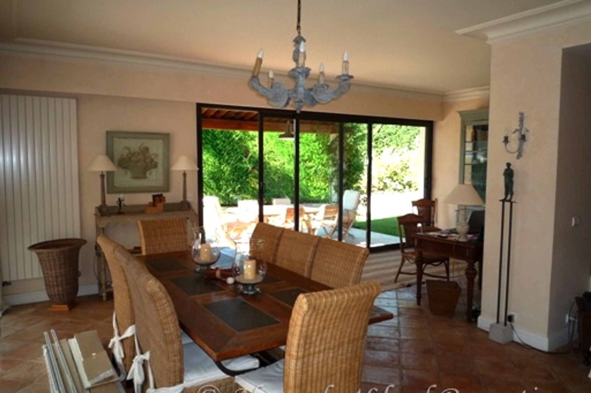 Located on the West side of theCap d'Antibes, this pretty Provencal villa is located in a private domain. On the ground floor : An entrance hall, a triple living room, a fully equipped kitchen with dining table, guests toilet, a twin bedroom with air conditioning, bathroom and shower room, a double bedroom with air conditioning and shower room On the first floor : One master bedroom with air conditioning, one bathroom, shower and toilet. Teak terraces in the garden, barbecue, garden, swimming pool with alarm protection. Double garage.