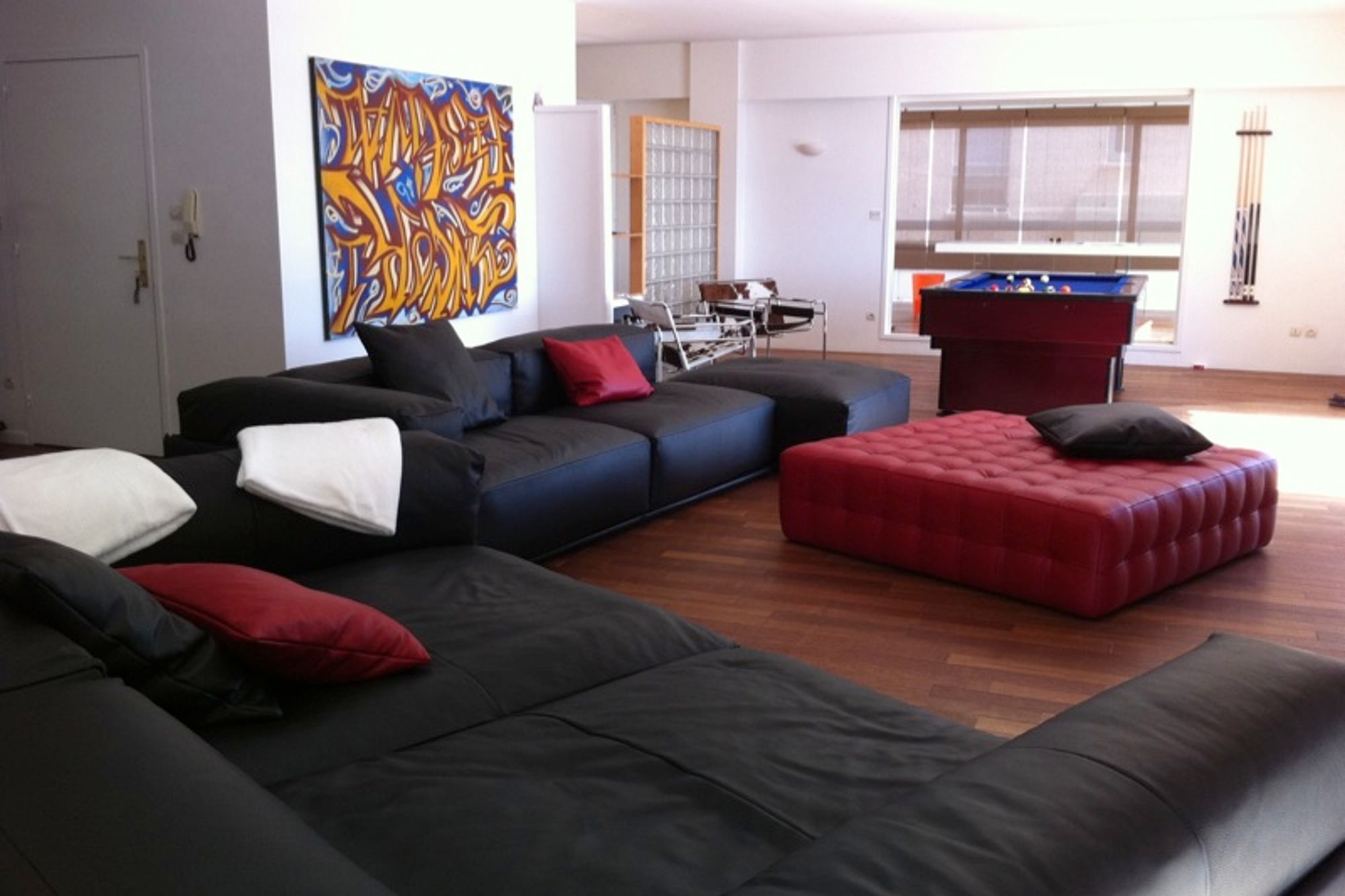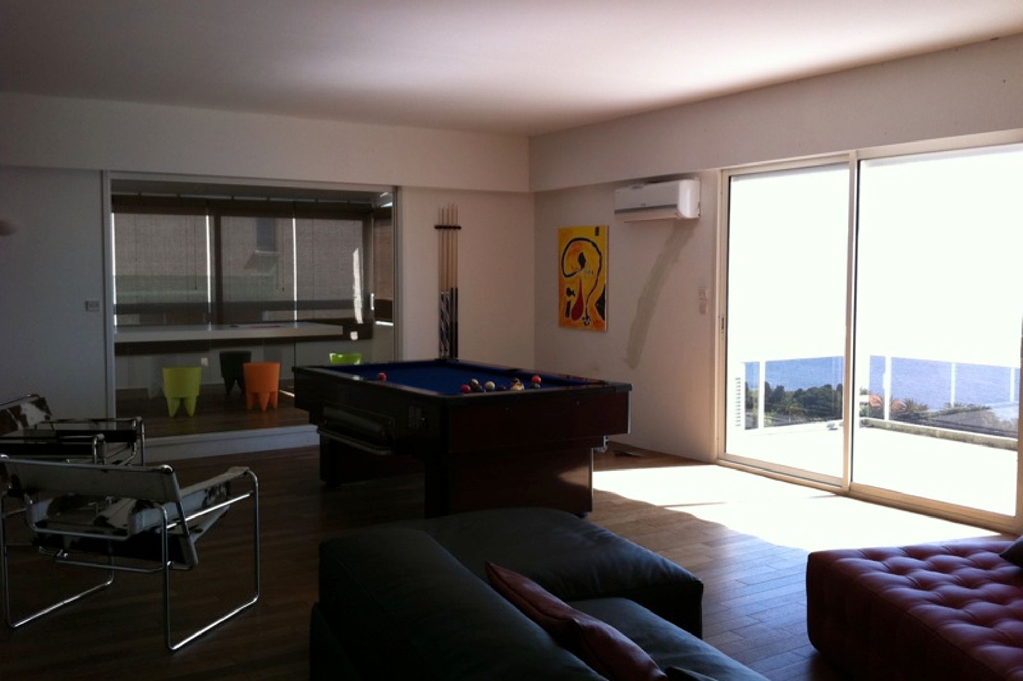 This newly renovated apartment is located in Ajaccio, on the famous Route des Sanguinaires, who offers the most beautiful beaches of the gulf (Barbicaja, Marinella, et le Scudo). Direct access to one of the best beaches of Ajaccio (50m) with a fish restaurant and paillote. Magnificent duplex apartment, extremely spacious with a wonderful panoramic view. The apartment has been completely renovated, with wooden floors throughout. 180m² of living space and 140m² of equipped terraces (sun shades, garden furniture, medeteranean plants). Large living room of 100m² equipped with a plasma screen (50in), home cinema, DVD player, hifi, and sateillite television. The living room has access to the kitchen, which is fully equipped with top of the range appliances. Three bedrooms equipped with a flat screen television, all with private terraces. One of these bedrooms is located on the top floor, beneficing from 40m² of living space and a terrace solarium of 70m². Two bathrooms. American pool table. Reading area, with a computer and video games. High speed internet. Telephone and fax. Playstation. Air conditioning (hot and cold) and access to a private lift. Roof top terrace. BBQ. Closed garage and outside parking. Linen provided.