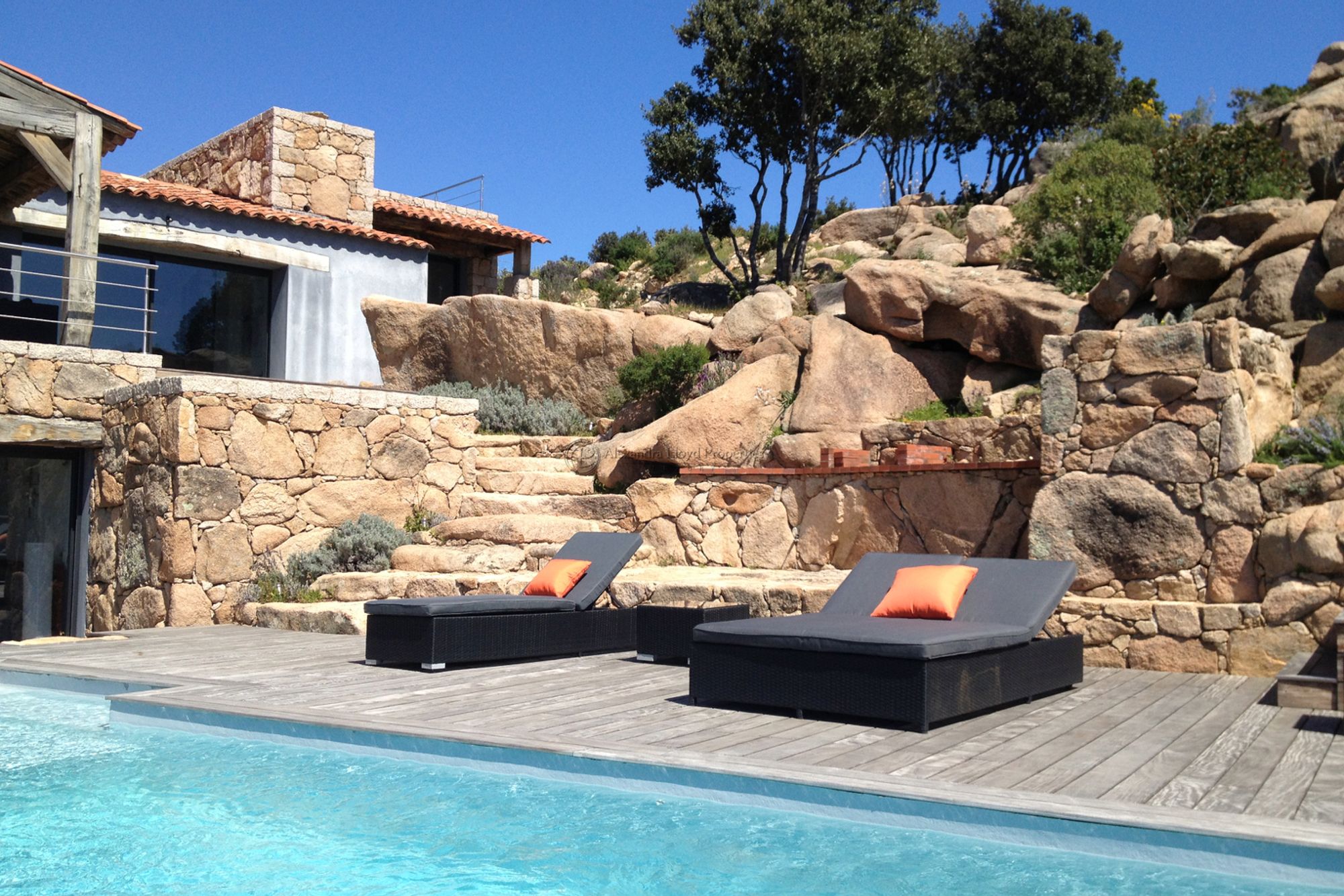 Built from traditional materials, such as pink granite ofPorto Vecchio, whereas the interior is more modern and minimalist - a great contrast between tradition and contemporary.