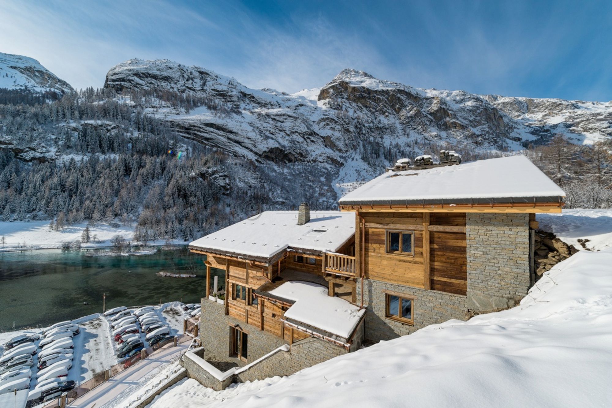 A fabulous innovation in Tignes, a rare product with wonderful views. Offering wide, open living areas... Two living rooms on two levels, both equipped with comfortable seating areas, large HD television screen, the lower living room also used as a games area with a pool table, ping-pong table, babyfoot Office area with Apple computer. Bar area with stools. Firewood stove & Large bay windows Cosy and convenient for large families. Large and fully equipped for food-lovers... Wonderful professional, eat in kitchen, with excellent appliances (two refrigerators, two ovens, professional coffee machine, wine cellar). Dining room seating up to 16 people. Elegant, modern, comfortable and spacious suites... 6 suites which offer a king size bed, dressing room, bathroom with bath and/or shower, separate toilet. Flat screen LCD high Definition 3D television, Blu Ray DVD player, satellite TV channels, desk and lounge chairs, refreshment bar and individual safe. 1 dormitory for kids or staff with four individual beds, a bathroom with shower, separate toilet. Flat screen LCD high Definition TV Satellite TV channels. Ideal out-of-the-way upper deck, THE location for party-lovers! 3 terraces, 2 open sky terraces, 1 covered terrace with 3 outdoor heaters. Multi color lighted outdoor furniture Multi color lighted bar. 2 barbecues. Outside stone pizza or bread oven Jacuzzi for 10 people. Outdoor sound system. To live, work and relax....just like you would at home (or better!) Fitness equipment. Indoor children’s cabin. Large wine cellar. Elevator. Ski lockers. Parking for up to for 10 cars. Premium services to facilitate your holiday... Additional services: Personal chef. Chauffeur driven car. Security services. Helicopter. Private jet.