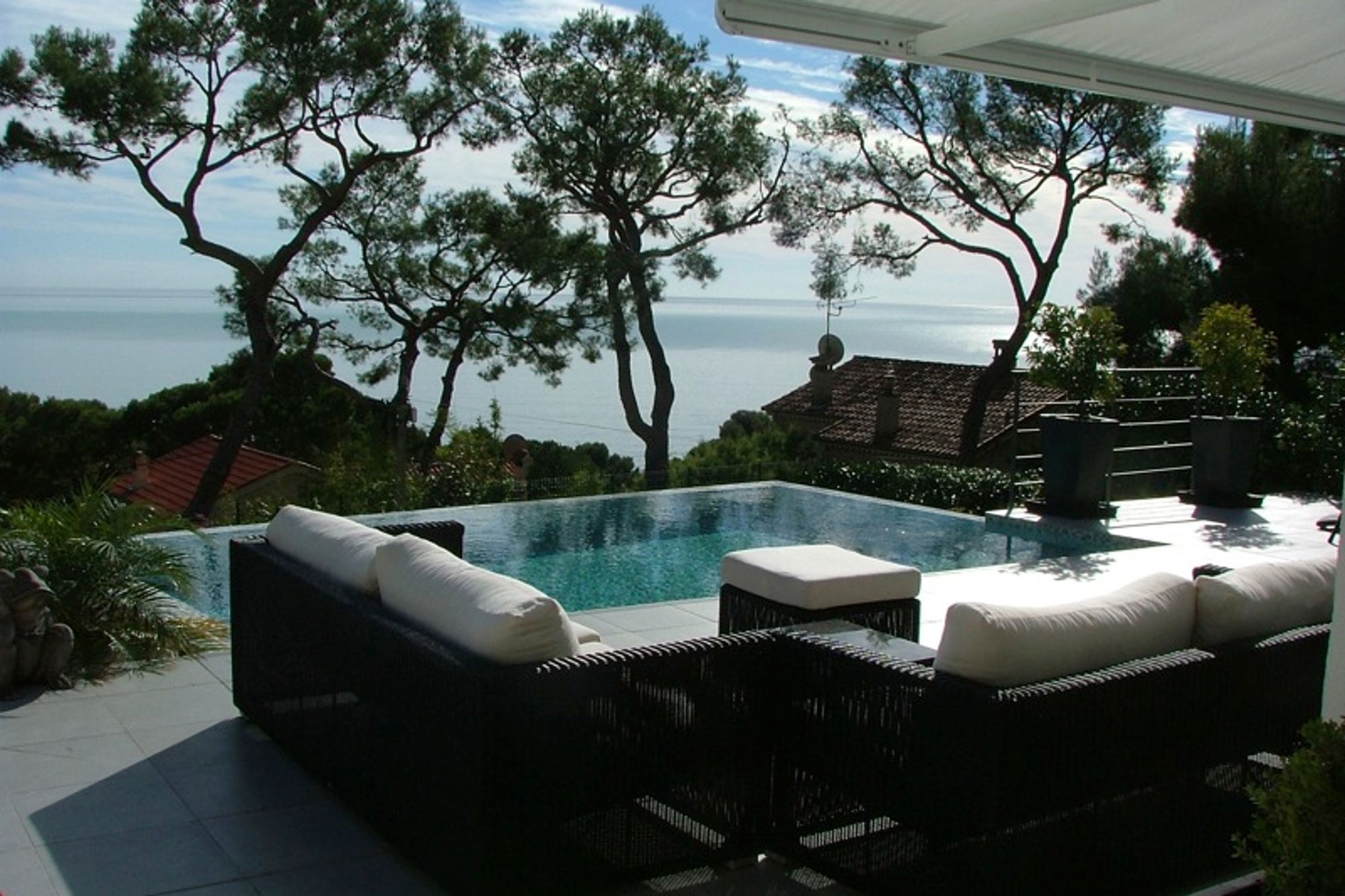 Charming modern property in Eze bord de mer with wonderful sea views. Light living room with open kitchen (well equipped) and dining area. Master bedroom with open bath and shower room; Toilet and bidet. Two guest bedrooms sharing a shower room. Sky television channels. Fully air conditioned. Electric shutters. Small swimming pool. Garage for two cars. Walking distance to the beach