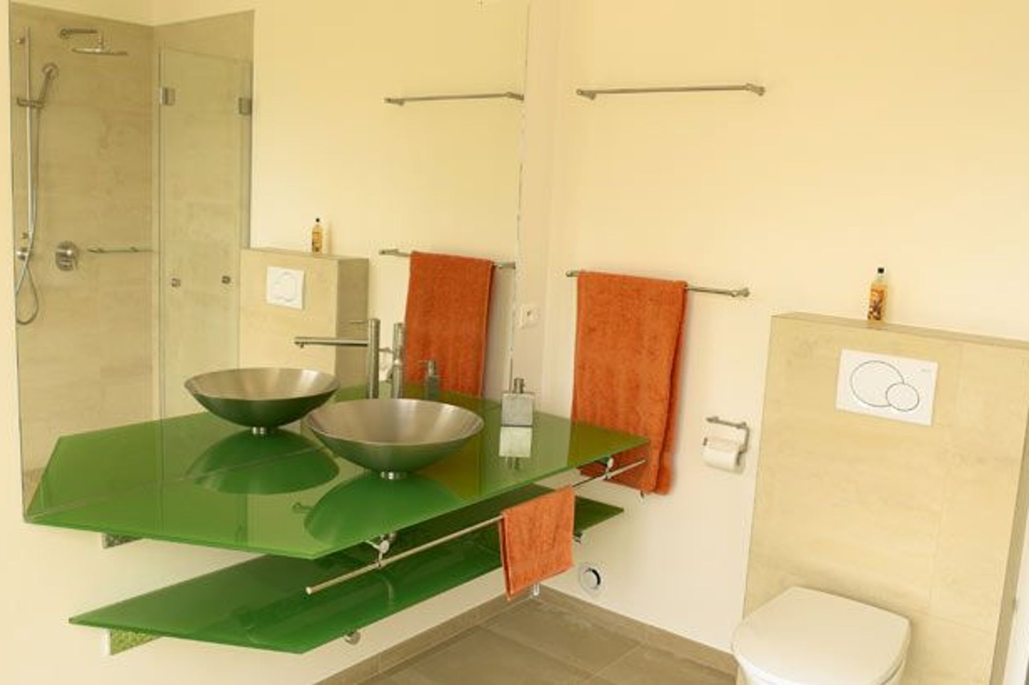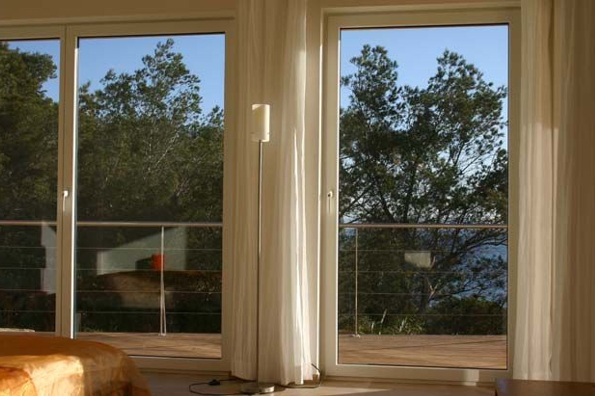 A newly built modern property (completed 2006) situated in the private domain Les Parcs de Saint Tropez, with a private path leading to the waters edge. Stunning 180° sea views along the coast and over to the Sainte Maxime peninsula. 300m² of living space within 4400m² of grounds. A superbly designed interior, with state of the art materials and devices. The main entrance leads through to the office/ library on the left hand side (equipped with telephone, fax, printer, scanner and other office equipment) Open kitchen with top quality appliances. Open living room with large glass windows, overlooking the sea. Dining table for 8 people Two bedrooms on the main floor each with access to the terrace and sea views. Two bedrooms on the ground floor including the master suite with a small personal kitchen and stunning bathroom. Heated Jacuzzi with an integrated sports system, with power jet streams for exercising. Small bowling ground. Gas BBQ. Safe. Garage for two cars. High security. Centralised electronic shutters. Alarm. High speed wireless Internet connection. Air conditioning throughout. New for 2011 : Hammam and gym room.