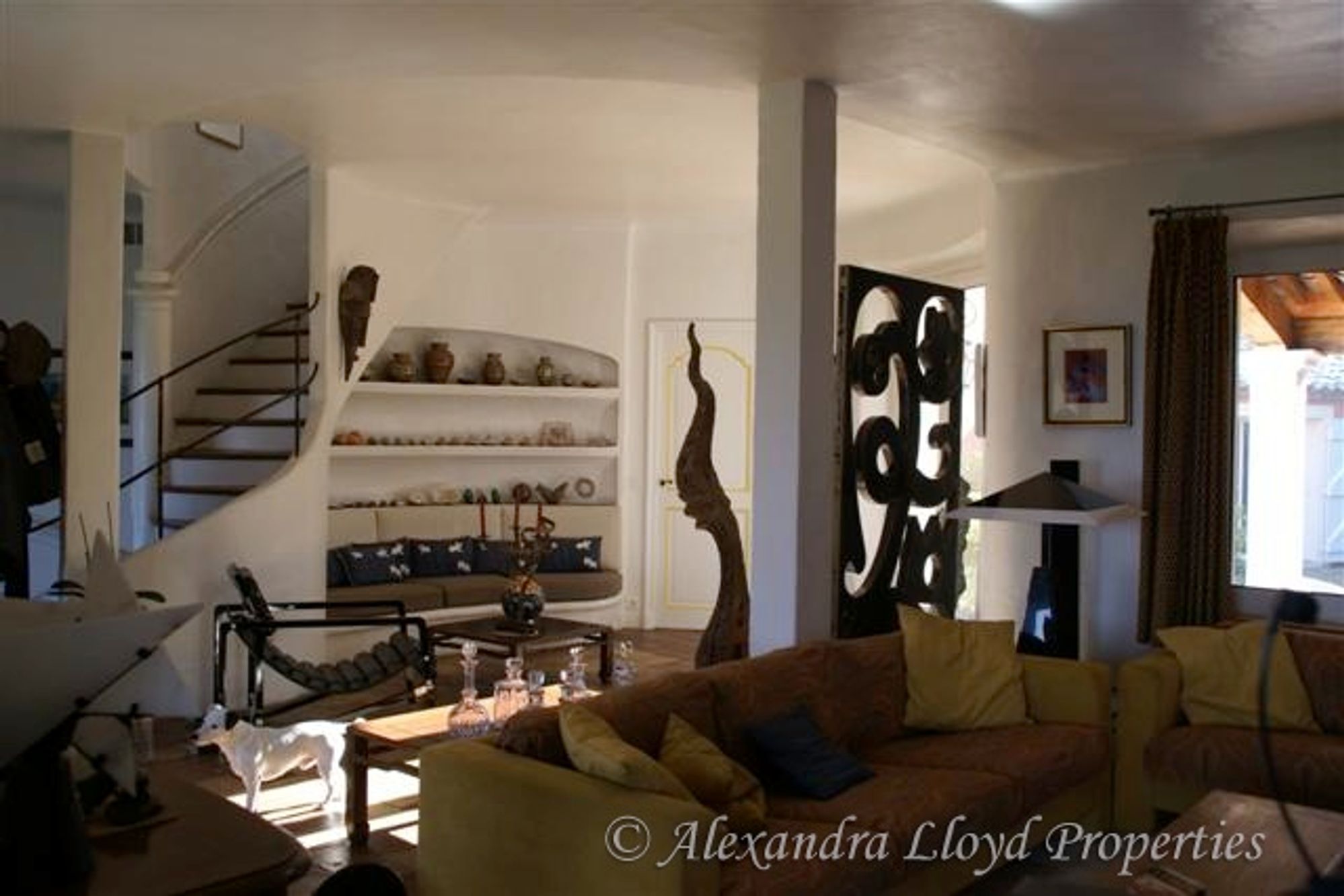 Property located on the hill of the Canoubiers in Saint Tropez. Wonderful sea view. Living space of approximately 220m² plus a guest house of 25m². Entrance level: In the tour: Large entrance hall. Open living room with a fireplace. Conservatory living room overlooking the sea. Kitchen and dining room. One bedroom with an en-suite bathroom. An office. Guest toilets. Garden level: Guest toilets. A large suite with a bedroom, living room, bathroom. Dressing room or an office. One bedroom with en en-suite bathroom. Laundry room. Cellar. Studio of 25m²/ Mezzanine with a bed. A small living room, a bathroom and a small kitchen. Grounds of 1850m² with swimming pool and a pool house of 20m² with a shower, toilets, sink and kitchen. Car port for two cars.