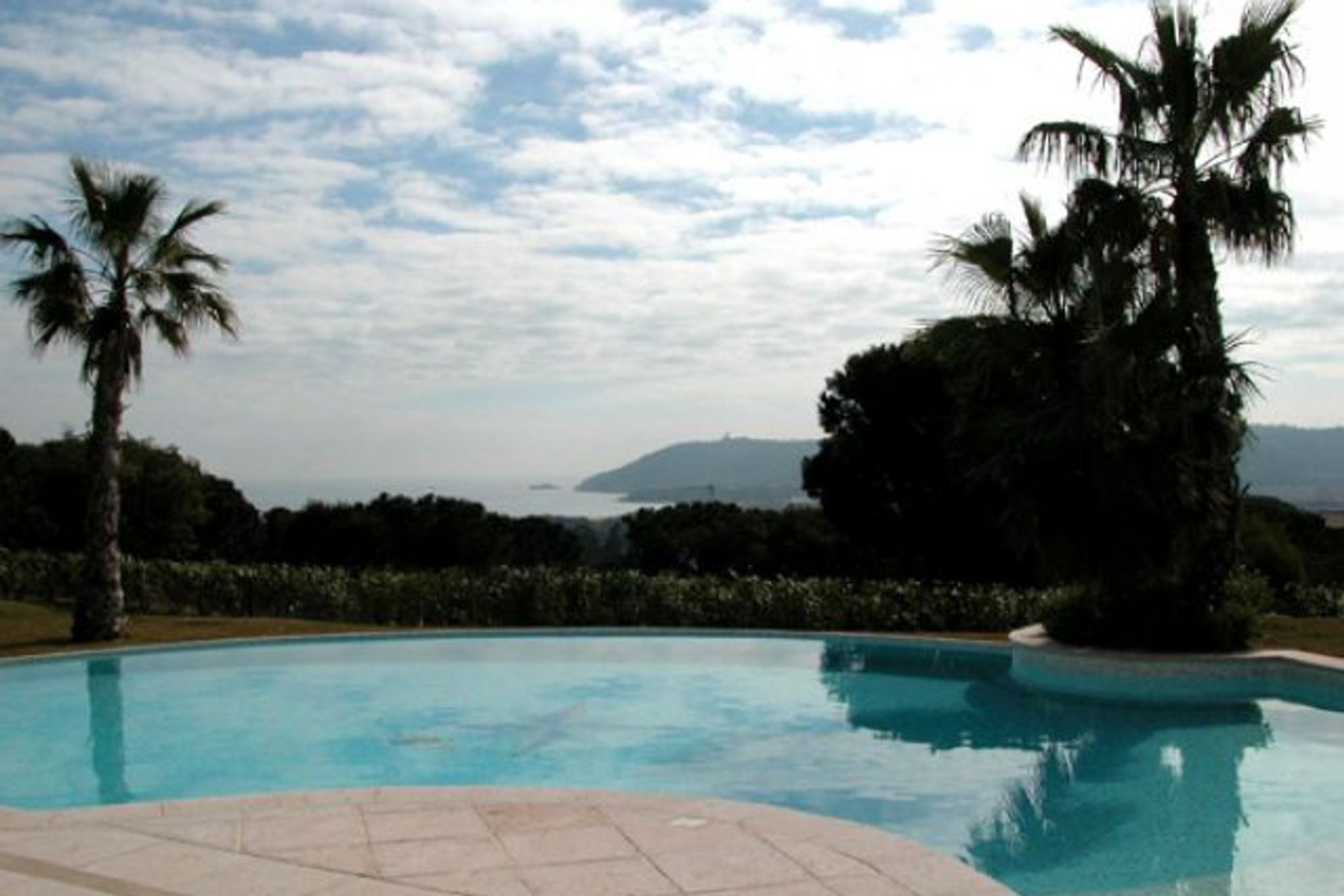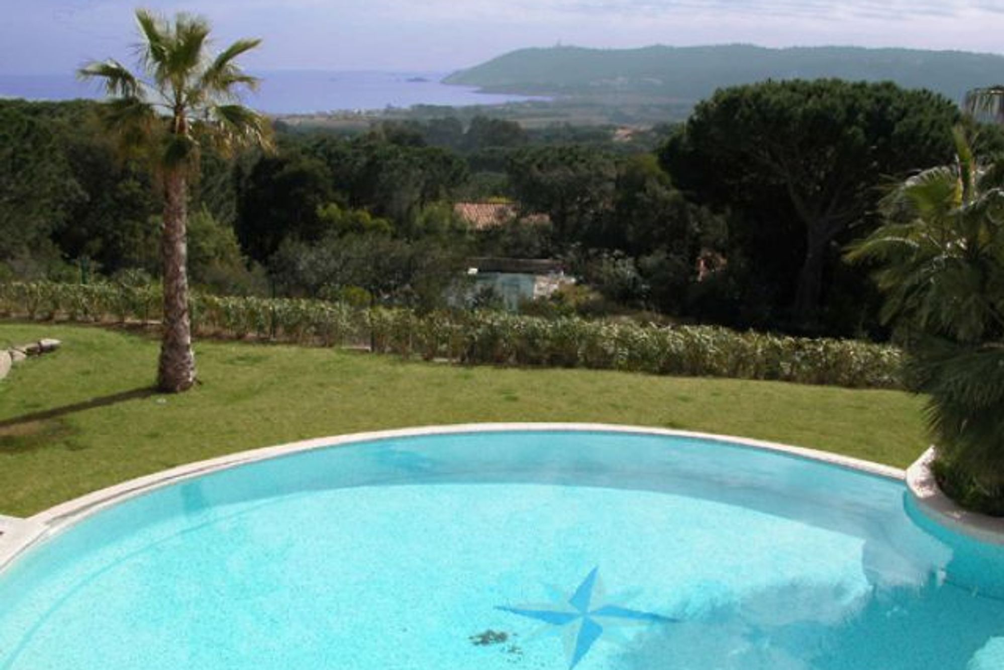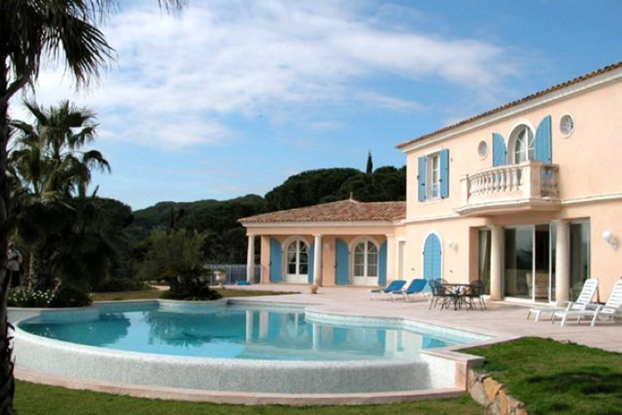 Provencal style villa located on the Route de l'Epi, Ramatuelle, notably famous for the \"Nikki Beach\", only 800m away. Lovely views looking over the sea the countryside and the Pampelonne Beach. Wonderful spacious interior, offering a large open living room with a plasma television screen and beautiful furniture. Large fully equipped kitchen with top of the range materials. Independent office. Five double bedrooms, all with their own personal bath (or shower) room. All bedrooms are air conditioned. A large independent apartment with a living room, a small American kitchen, two bedrooms, and a shower room. Large heated swimming pool, with a newly installed glass protection cover for children.