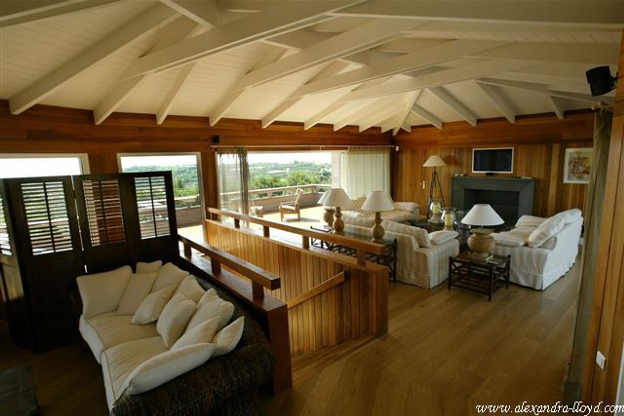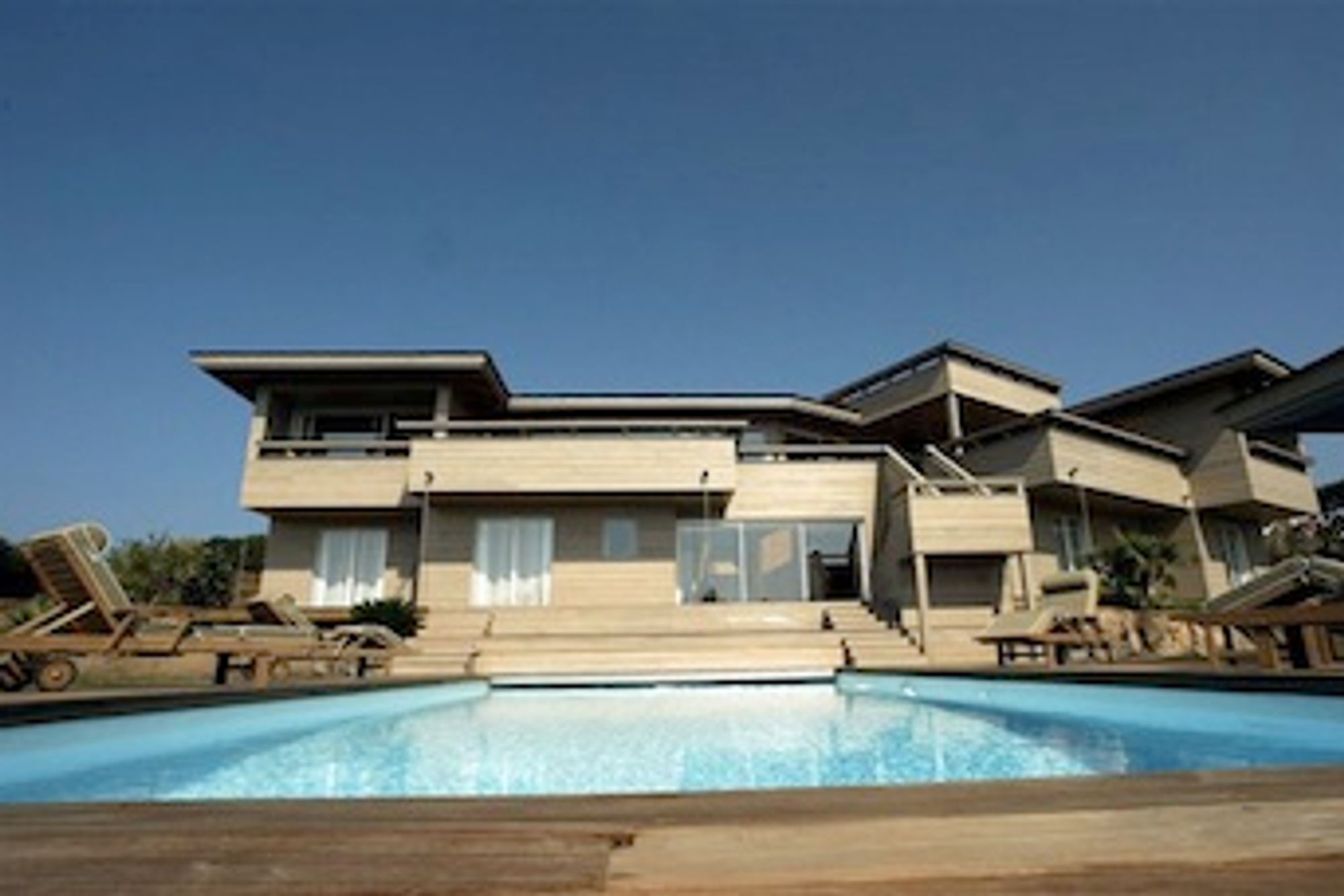 Located within the Domaine de Sperone in south Corsica, close to the famous 18-hole golf course and the area's beaches, this six-bedroom villa is constructed entirely in red cedar across 370 m² of interior space, with a further 400 m² of terraces and solarium set within 37,000 m² of manicured grounds.