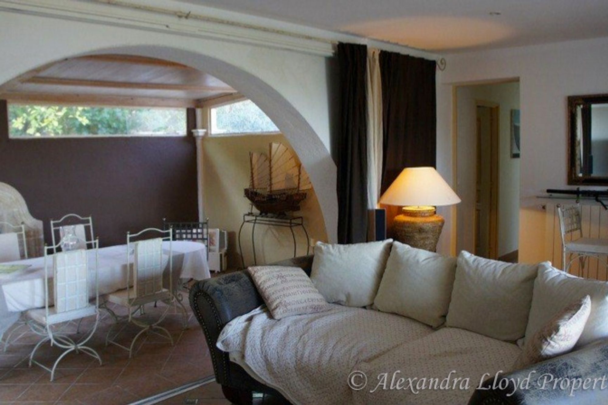 A charming Provencal style property offering 223 m² of living space (approximately) with modern interiors. Grounds of 1250m² which are well maintained. Ground level: Entrance hall, guest toilets, cloak room. One bedroom with a shower room and wc. A large living room with a fireplace. A charming well arranged American kitchen. A bedroom with a shower room and toilet. A large bedroom with a shower room and access to the swimming pool. On the first floor: Master bedroom with bathroom, shower and dressing room, leading onto a wonderful terrace with views over the sea and the countryside. Swimming pool. Car shelter.