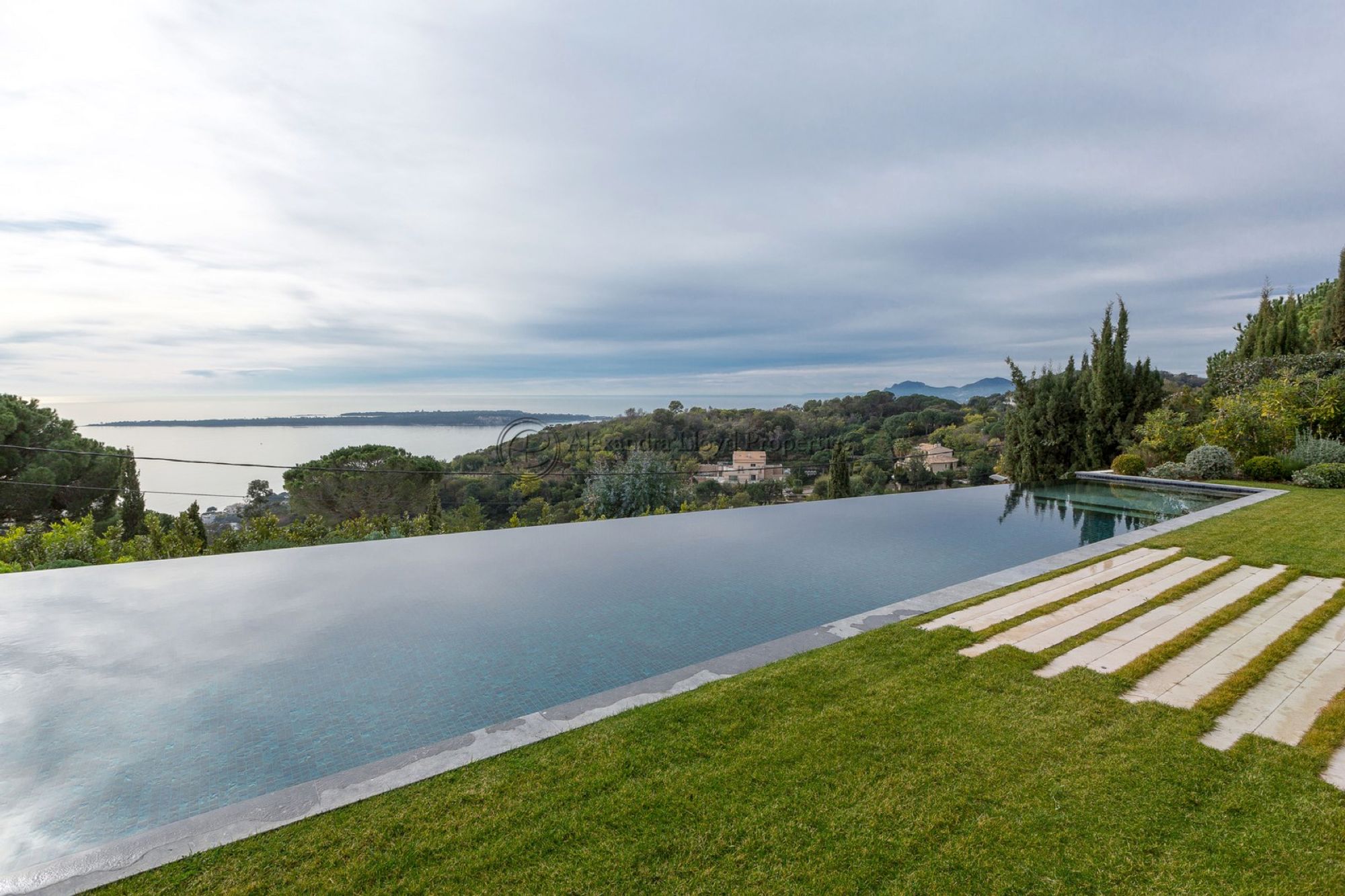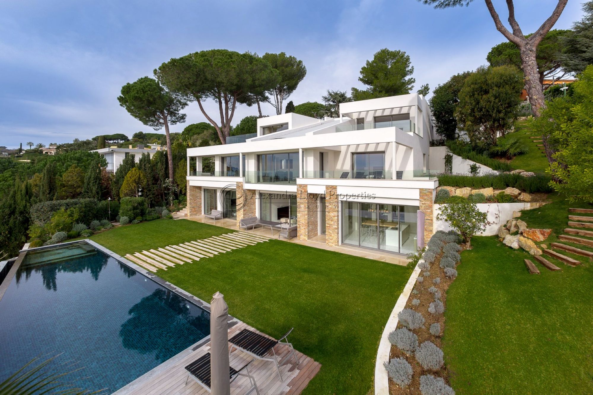 Superb new contemporary villa offfering 630 m² of living space upon 2000 m² of manicured grounds land overlooking the Bay of Cannes and the Cap d’Antibes. Located in the chic neighbourhood of Super Cannes, offering a swift access into the centre of Cannes, but being in a peaceful environment.