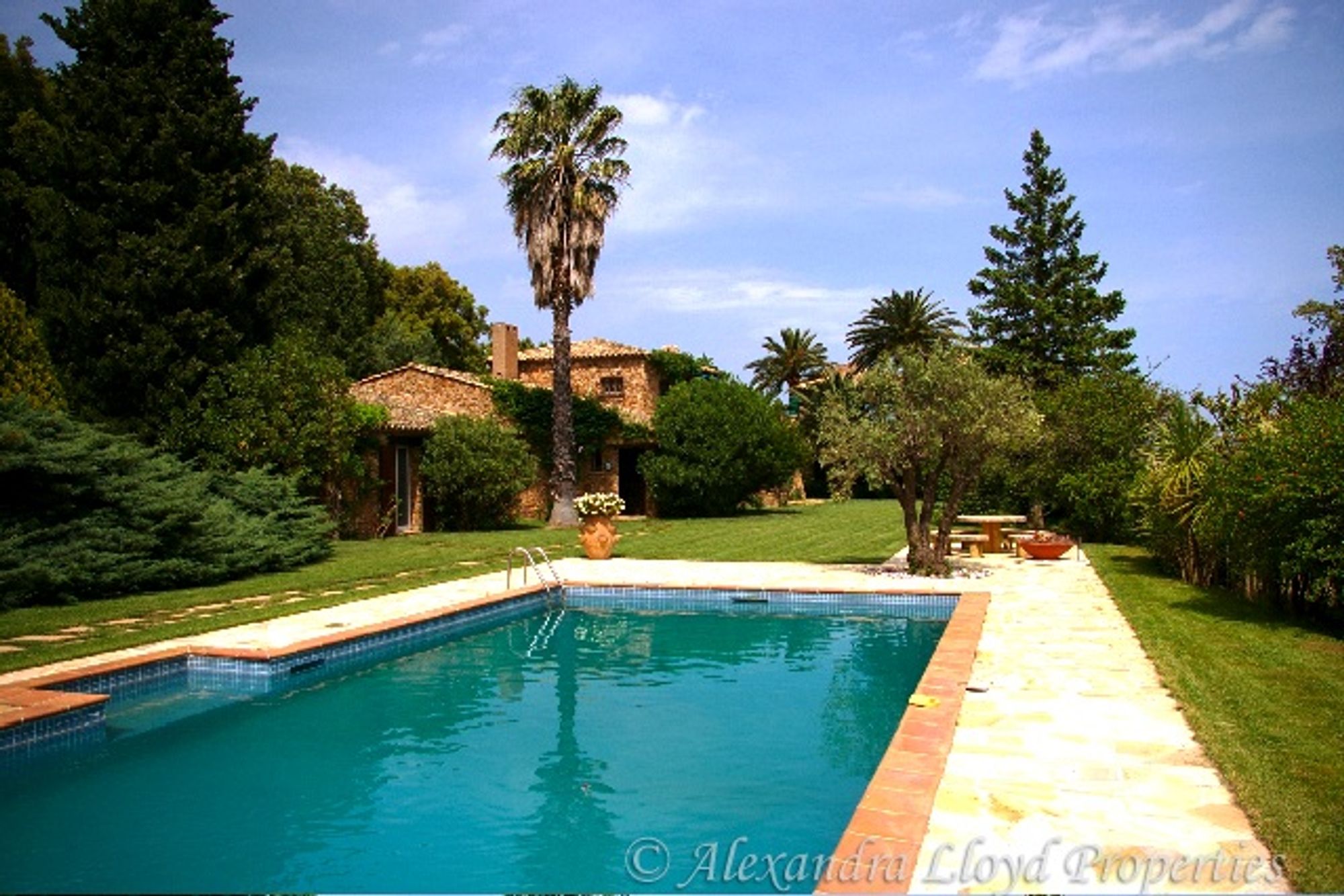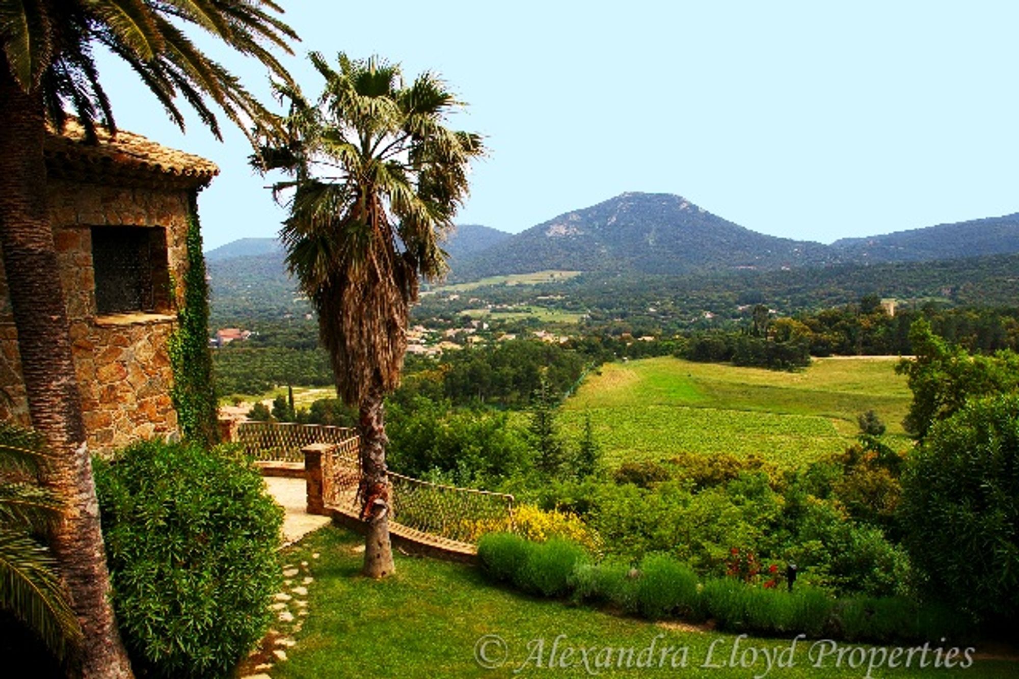 The Oubradou dominates the magnificent plateau of Plan de la Tour, to the hollow where we see the sea Cezanne is there in this landscape, on the slopes of Mount Saint-Pierre. The village is two kilometers away and the beaches at nine. Saint-Tropez is a twenty minute drive or a little less with the regular service of boats at sea. It is half past one to reach the international airport of Nice d'Azur. In 1971, William Rubin, director of the Museum of Modern Art in New York and internationally recognized expert leaves for Mougins with \"Estaque\" Cézanne in his luggage. He wants, once again, Picasso convince to give up her \"Guitar\" against the table. This guitar, sculpture emblematic of modern art it produced in 1912, Picasso in his studio is jealous. Picasso and finally yield to Rubin will not Estaque. The two became friends and met regularly until the painter's death in 1973. That same year, 1971, William Rubin, who has a superb ground plan of the tower built in Oubradou is whether the property is the fingerprint of the epic inspired art of this man who died in 2006. The Oubradou is composed of three entities, the main house, a small tower serving as a guest house and caretaker's house. All constructions were carried out with the red stone of the Massif de Maures. The mineral content is hardly a garden full of vivacity, solar hard battle with the phoenix palms. The atmosphere is Oubradou of this measure, to thank you from the sky and time. In the house: Composed of two parts connected by an amazing winter garden in a large greenhouse, orange trees, bougainvillea and hibiscus explode with colors and scents around the indoor pool. The oldest part dates from 1971. Ground Floor: Entrance, hallway left to two bedrooms and a bathroom, all opening onto the garden. On the right a large living room with fireplace and large kitchen in a row. Large veranda with dining and living room in the middle of winter citrus and hibiscus. 1st floor: An office, a large bedroom with a bathroom and a large terrace with lovely views of the valley, the winter garden and patio. The second part was built in 1996 is built on three levels with elevator (CONTINUED) and dumbwaiter. Ground Floor: Two bedrooms one bathroom, a kitchen with a dining room, cellar and laundry room. Garden level: A bedroom and bathroom, access to the terrace and conservatory. A large terrace where meals are taken against the sumptuous scenery. 1st floor: A large bedroom with a bathroom and a terrace. Guest house: An independent tour at the end of the garden with a living room and bedroom with bathroom. Caretaker's house: Located on the edge of the property it has two bedrooms, two bathrooms, a living room and kitchen. 5.2 hectares in one piece, south, stunning views, lush garden full of flowers all summer. There, at the entrance to the property, 4000 m² of vines. Opportunity to build a helipad. Heated swimming pool 17m x 6m.