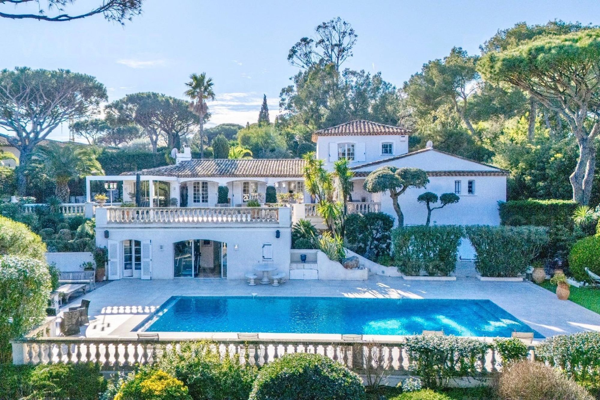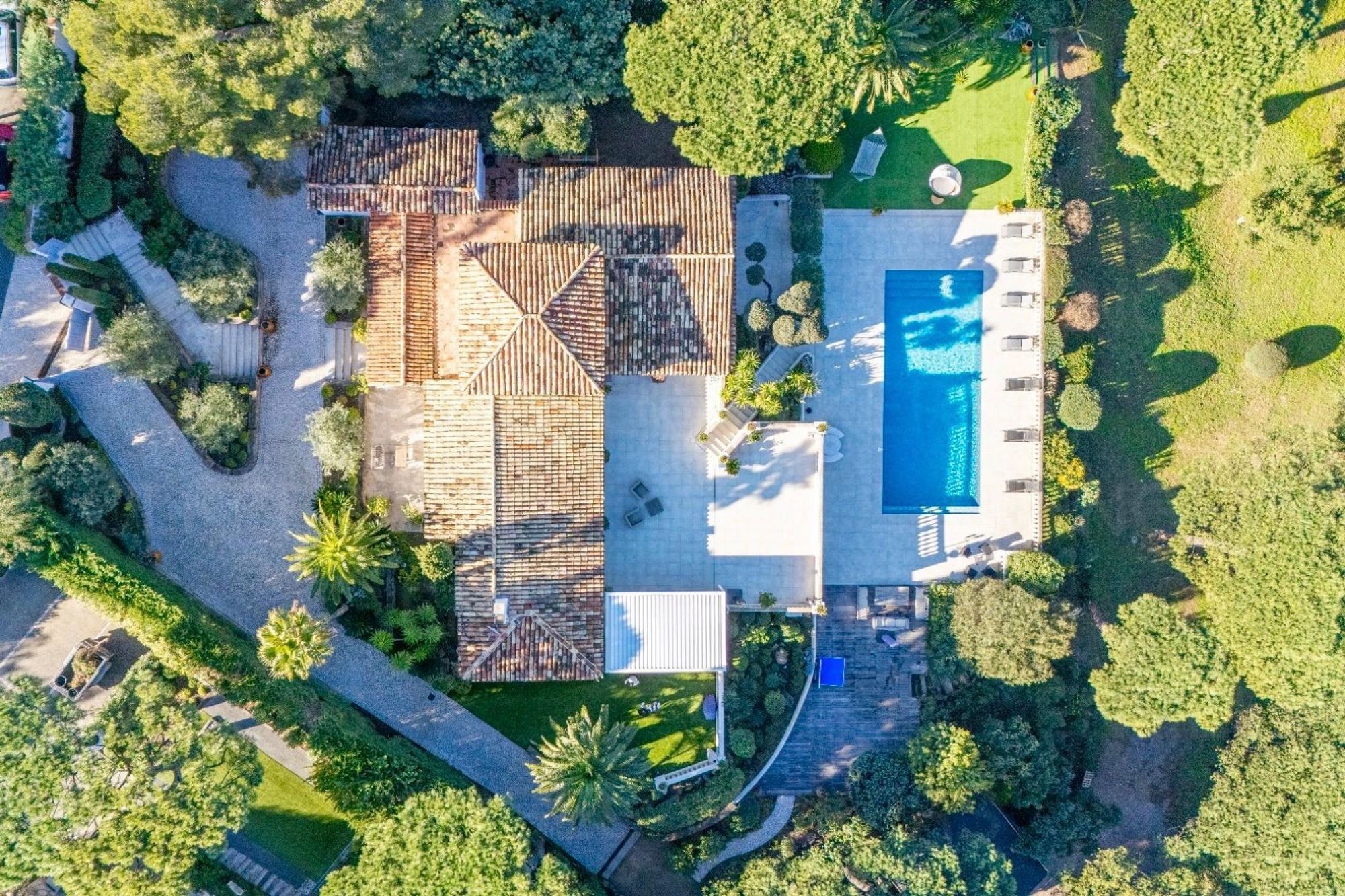This serene retreat is located within a secure private estate, Le Domaine des Moulins, just five minutes from Saint-Tropez and Pampelonne Beach.