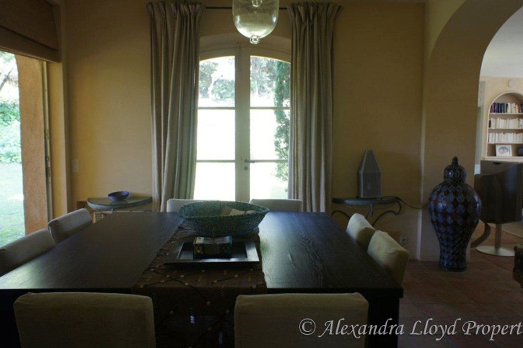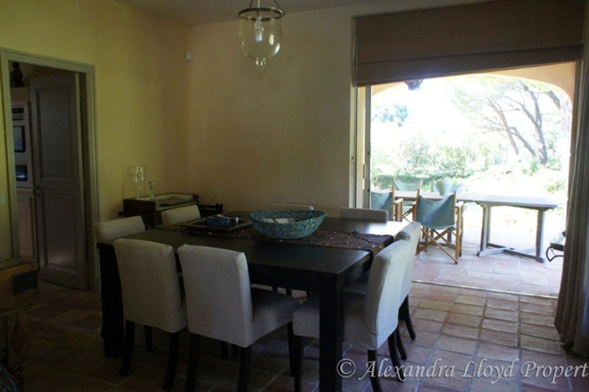 House located in « Les Parcs of Saint Tropez ». Southern exposure. The property offers 280m² (approximately) within wonderful grounds measuring 4960m². There is a possibility of extending the villa by 100m². Garden level: Entrance. Guest toilets. Large sitting room with a chimney looking onto swimming pool and other side to a patio. Dining room. Kitchen. Three bedrooms with three bathrooms. An independant bedroom with shower room First floor: Bedroom. Shower room. Ground floor: Two cellars Washroom. Garage. Swimming pool. Water well. Heating in the fuel oil. Automatic sprinkling system. Automatic gate. Alarm.