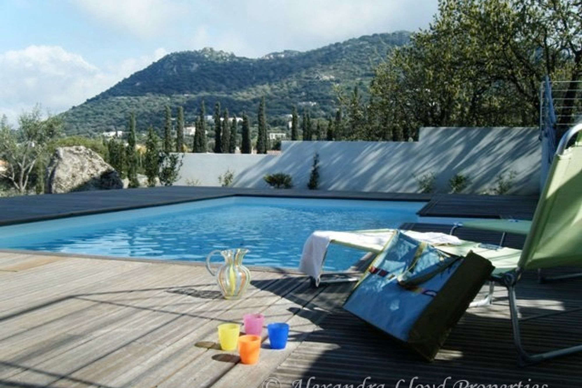 This wonderful property has been designed to bring the beauty of the light outside, inside! The propertys most dramatic feature is the impressive full height windows that open up to the sea, swimming pool and mountains. The living area is 6m in height creating a sensational sense of space and coolness. Within this grand open space you can find a comfortable seating area with television and music system and a dining table and chairs for 8 people. The kitchen is spacious and well equipped with all the utensils you would need to cook for up to 10 people. The kitchen has a 4 ring induction hob, an oven, a fridge, dishwasher, and microwave, as well as a kettle and coffee machine. There is a useful utility area off the kitchen with an American style fridge/freezer and ice maker, and washing machine. On the ground-floor there is a double bedroom with en suite which includes a bath, shower and toilet. Also on the ground-floor there is an additional cloakroom/toilet. Upstairs to the mezzanine are two further double bedrooms (one with double bed, the other with two singles) sharing an en suite shower and toilet. This stunning mezzanine landing looks down onto the living area with amazing views out to sea and the distinctive pink rock of the Ile Rousse. On the mezzanine landing sits a sofa bed that can be used for additional guests. This may not be a bedroom but it’s the bed with the most beautiful view in the house! Outside there is exotic timber decked terracing around the entire house and the 8m x 4m swimming pool. There are comfortable sun loungers as well as outdoor dining furniture to seat 10.