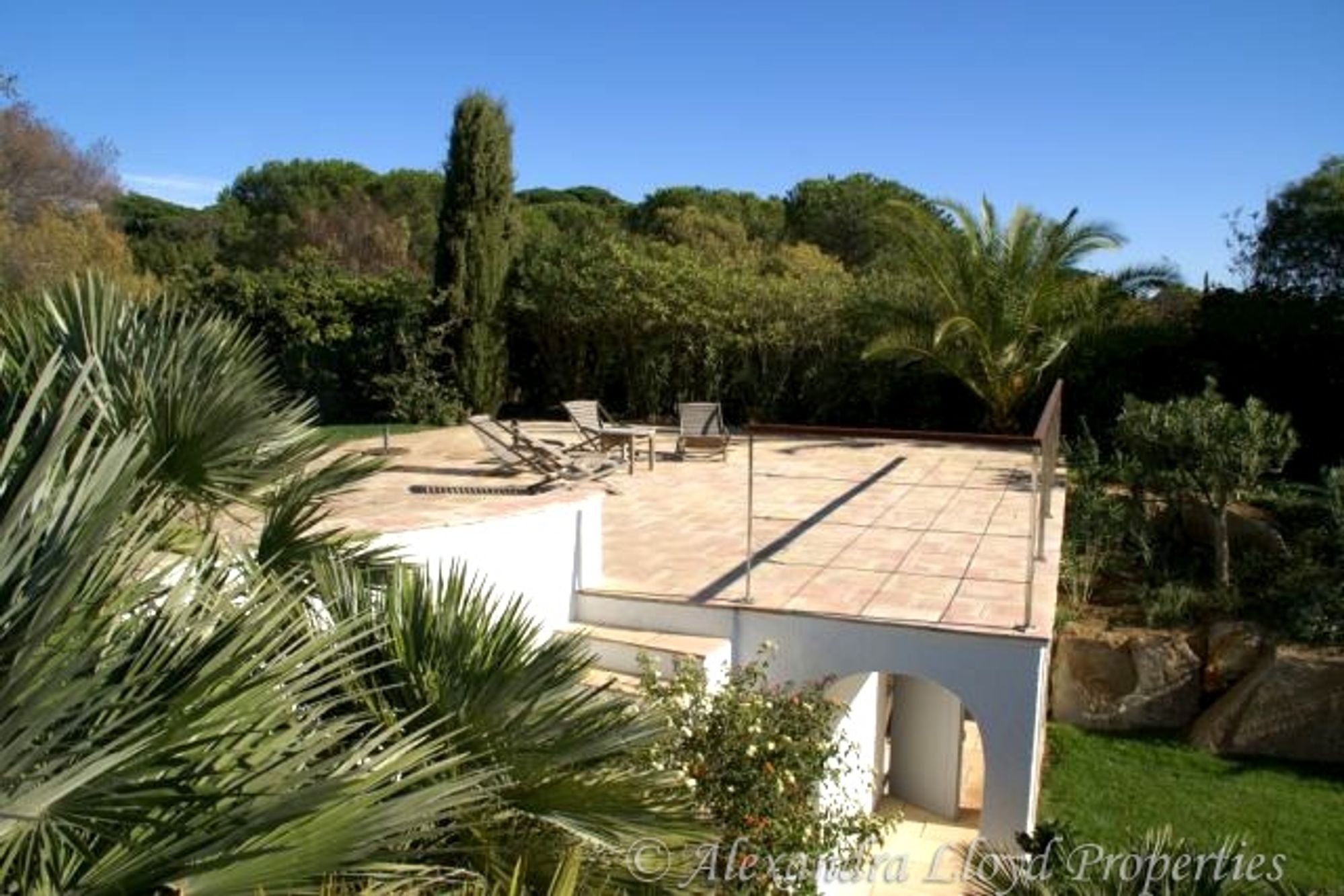 Close to the village of Saint Tropez and the Salins beaches, located in the Moutte area This wonderful villa of 350², is south facing and is situated within 5000m² of flat grounds. On the ground floor: The entrance divides two parts of the property, the night area on the right, the working area on the left and the living area straight ahead. A large living room with a fireplace, dining room and an office area. There is a staircase which leads to a studio on the lower level. The living room, dining room and office all have access to the exterior of the property, which enables a lot of light into the villa. Fully equipped kitchen. Three bedrooms, all of which are en suite. A master bedroom with dressing room and adjining bathroom. Tow further bedrooms, all which have garden access, with their personal shower rooms, which can be transformed into guest bedrooms, staff bedrooms or art studios. A well manicured garden, lovely flowers with other Mediterranean essences which live in harmony on this wonderful plot of land. The large terraces overlook this wonderful landscape, vineyards, and luxurious villas make up the surrounding area. Swimming pool. Air conditioning Safe
