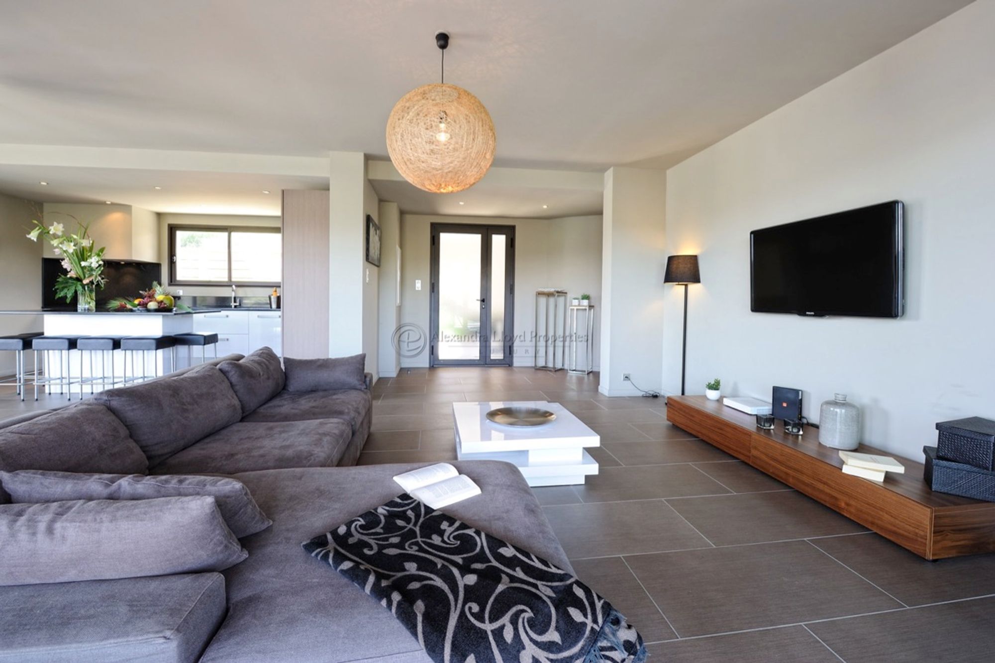 - Open living area, with dining room and opening onto the terrace