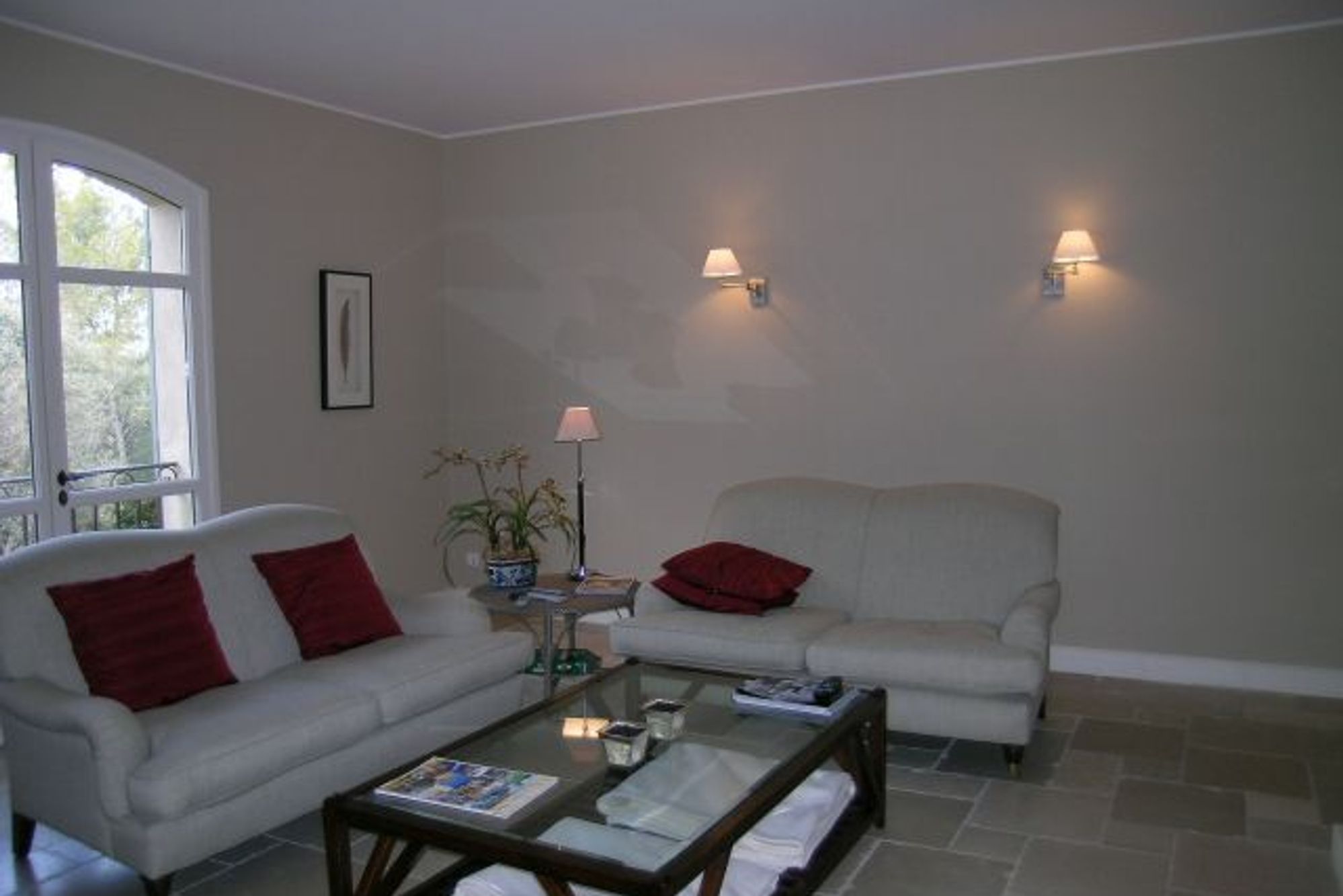 Stunning newly built villa located next to the charming old village of Mougins. This six bedroomed property situated in large grounds of approximatly 6000m² offers total peace and quiet, an ideal holiday location. Wonderful decoration, extremely tasteful and good quality furniture. Large living and dining room, leading straight out onto the garden and the swimming pool. Separate television room with a working fireplace and SKY satellite television channels. Office with computer, printer and wireless high speed internet connection. Five double bedrooms each with its private bathroom. Cleaning forfit included for monthly rentals. Alarm. Heated swimming pool, pool house and BBQ area. Tennis courts. Available for receptions, marriages and other special occasions.