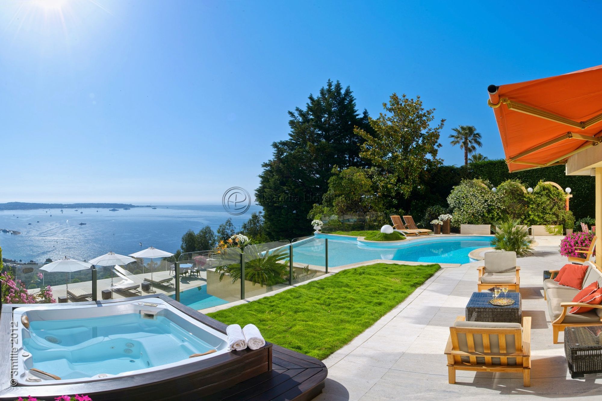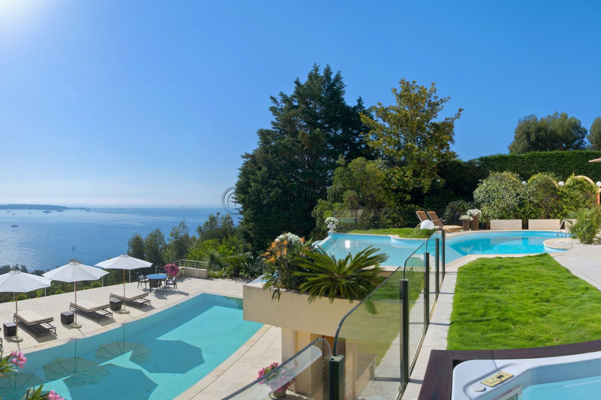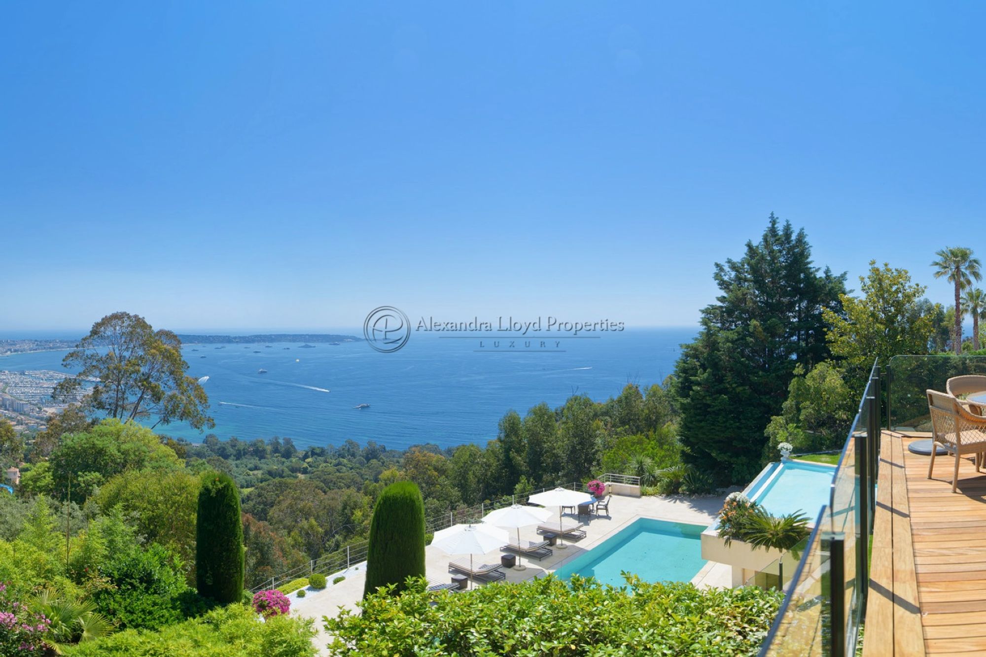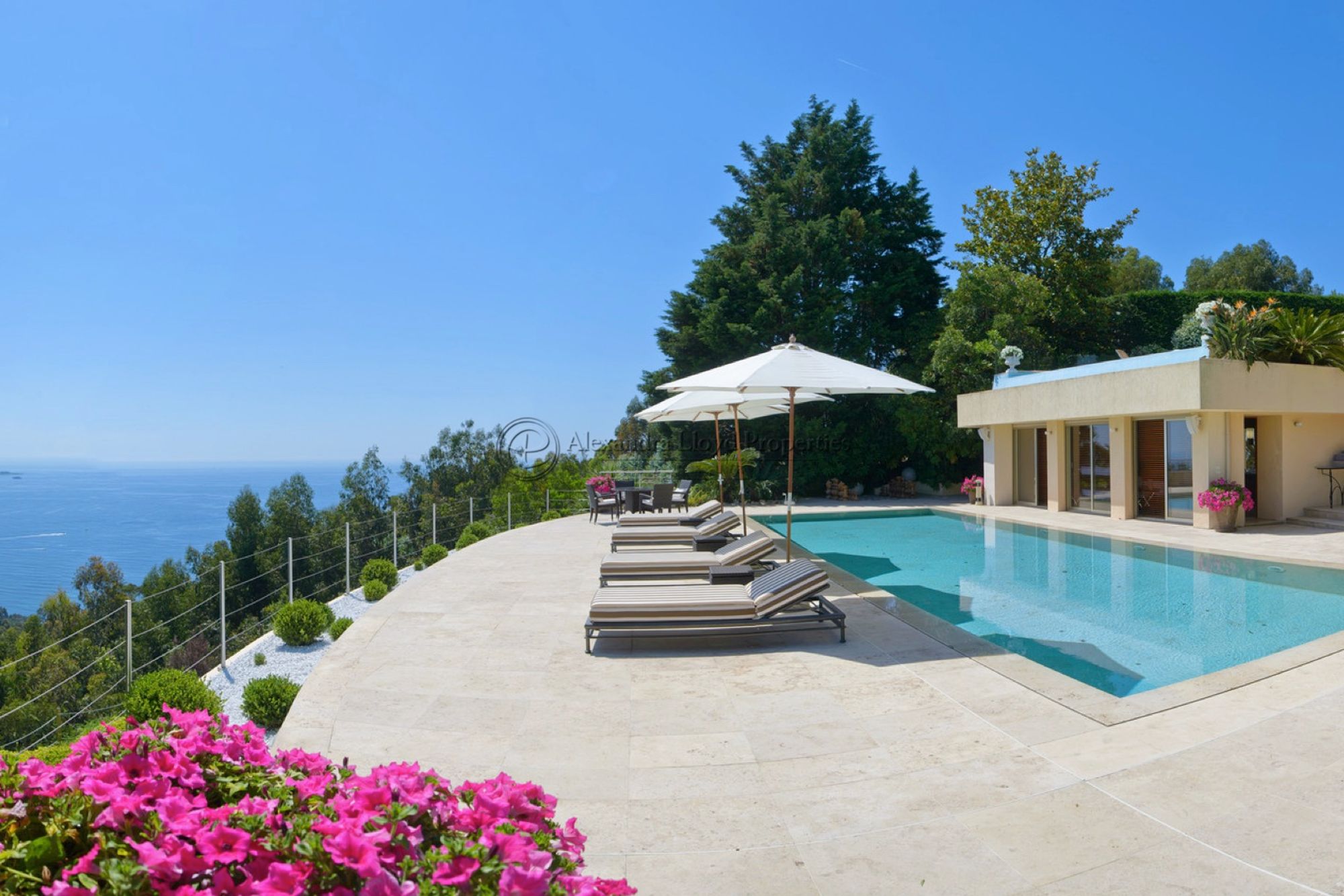- Three large open terraces and a 15 meter pool that all enjoy these sumptuous views of the Mediterranean.
