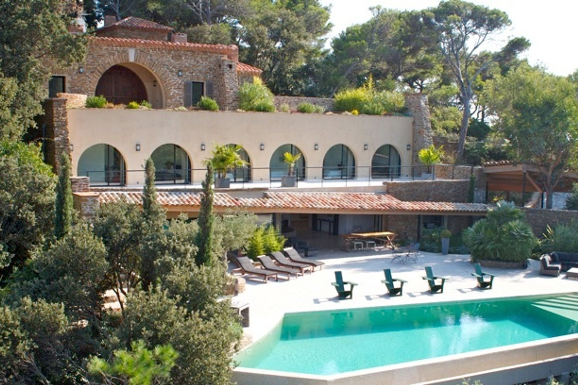 Located in a gated private domain, on the stunning Cap Benat, this property offers direct access to the water and has been renovated by the architect Maurice Sauzet in 2009. The villa was originally built in 1928, from local stone (from Bormes) and was used as a garrison house for the Cristaou fort. In 2006, Maurice Sauzet transformed the property into a contemporary style, but maintained the original features of the villa. The property offers 360m2 of living space, spread onto three levels, with stunning views over the sea. There are six bedrooms, five bath/shower rooms and one staff room. Lift. Large terraces of approximately 500m2. Overflow swimming pool 14x5m. Direct access to the sea, via teak terraces. Boat garage 7x4m. 20 mins from Toulon airport. 40 mins from Saint Tropez 2 hours from Nice Airport.