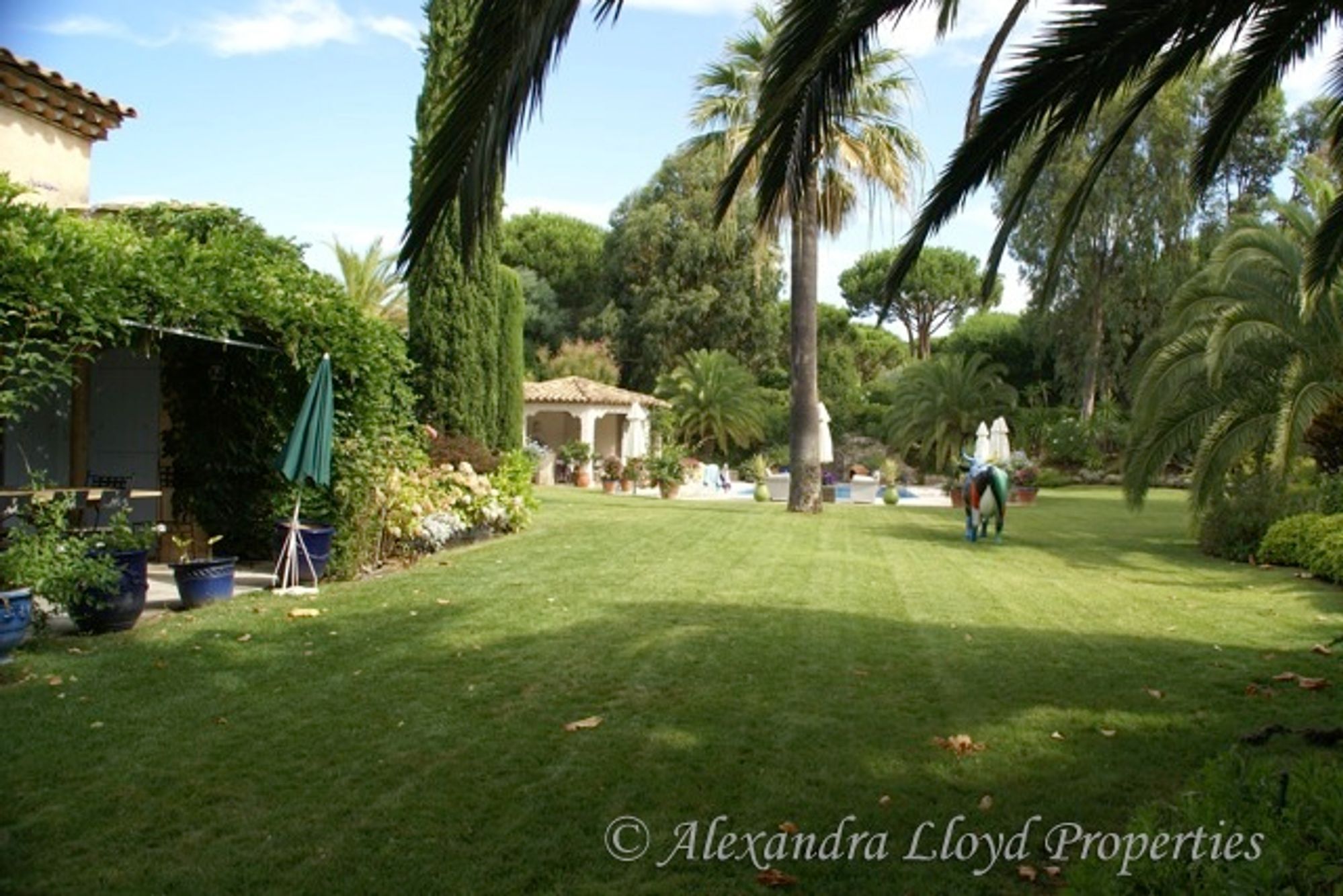Wonderful villa for sale on the Route de Tahiti . Only five minutes away from the famous Tahiti beach, in lovely well kept grounds, in Ramatuelle. Located in grounds of 3500m², this luxury house offers living space of approximately 300m². The villa is made up of: Main house: Right wing/ Ground floor: Large entrance, guest toilets, large living room with a fireplace, office area and dining room. Kitchen which leads out onto a shaded terrace. A bedroom with a shower room, opening onto a lovely patio. A second en-suite bedroom with access to the garden and swimming pool. First floor: A bedroom with a view over the swimming pool. Second bedroom with a solarium. Toilet. One shower room. Left wing: Ground floor level: A small living room with a fireplace and leading out onto a lovely patio and the other side of the garden and swimming pool. One bedroom with a bathroom. First floor: Master suite with bathroom and dressing room. A lovely 3500m² garden, with lots of flowers.