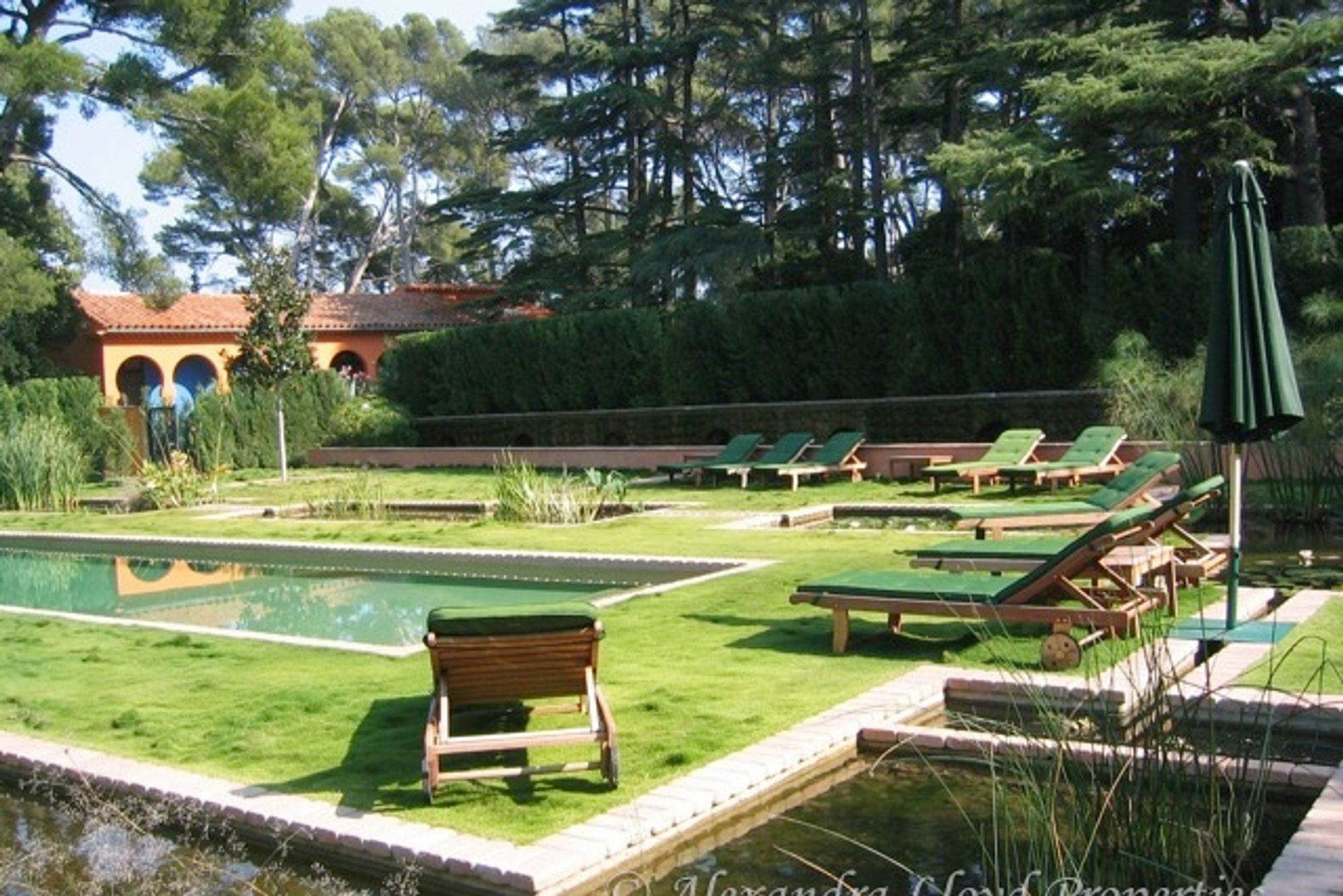 Domestic staff: 2 house maids at disposal. 3 persons for garden, pool and beach. Manager and gardener on site.` Location: Cap Brun. Le Pradet (Var) Access: Airport: Toulon-Hyères, accessible to private jets. Only 20 minutes Railway Station: Toulon SNCF (High Speed Train) 15 minutes by car. Highway: 15 minutes by car to reach the highways to Marseille, to Paris or Nice and Italy. Leisure and Sport facilities: Golf, Water-Skiing, Yatching, Canoe, Marina (very close) Possibility to hire private boats to Saint Tropez ( 90 minutes) Iles d'Or (Porquerolles, Portcros) and many other islands in the area the beautiful Calanques of Cassis etc. Festivals: The world famous Opera festivals in Aix en Provence and in Orange with its ancient theatre. Drama Festival in Avignon. Rocabella's specifications An outstanding property offering 20244sq feet (1900m2) of living space on 741 acres (3 hectares) of wooded grounds with private access to the sea. Exterior: On the wooded grounds (741 acres) lie ornamental gardens. Spanish style ornamental ponds. Swimming pool. Two summer dining-spots in the shade, one with a view onto the sea. Outbuildings. Shaded parking lot. Direct access to the sea, private beach supplied with fresh water. Interior: A three-storied living space of 20244 sq feet (1900m2). Ground floor: a magnificent entrance hall (100m²) with an outstanding grand staircase leading to the 1st floor and opening onto a series of 4 linked rooms, starting with the wainscotted library(55m²), then on to the first sitting-room (winter garden) with a large stylish bow-window (90m²) looking onto the ponds, and on to a vast sitting-room with fire place(100m²) opening on the dining-room (63m²). There is also a fully equipped kitchen. Basement: a huge professionally equipped kitchen to cater for receptions and giving onto the garden and the summer dining spots. 1st floor: 5 huge bedrooms with separate entrance and 1 smaller bedroom. Each with its own dressing-room and bathroom. with bath tube and independent shower, safe. Master suite: ( 85m²) three windows and balcony with view on garden and sea, king size bed, mini fridge. Kerilos suite: (55m²) 1 window with balcony on the sea and one on the Spanish ponds, twin beds or super king size bed. Mucha suite (52m²) one window with balcony on the sea and one on the garden, twin beds or super king size bed. Rateau suite: (58 m²) two windows(one with terrace)on the beautiful rear view , twin beds or super king size bed. Pompei bedroom: ( 40m²) with view on the Spanish ponds and rear landscape, twin beds or super king size beds. Victoria bedroom: (25 m²) view on sea and garden, queen size bed , bath tube no independent shower. On the same floor a linen room with washing machine, tumble dryer and ironing board. 2nd floor: 4 bedrooms with AC. Each with its own dressing-room and bathroom. with bath tube and independent shower. Room 1: 2 twin beds that can make a king size bed (2 x 35\" or 70\"), AC, with own bathroom with shower Room 2: 2 twin beds that can make a king size bed (2 x 35\" or 70\"), AC, with own bathroom wit bath tube Room 3: 1 queen size bed (65\"), AC, with own dressing-room and bathroom with bath tube Room 4: 1 queen size bed (65\"), AC, with own dressing-room and bathroom with shower