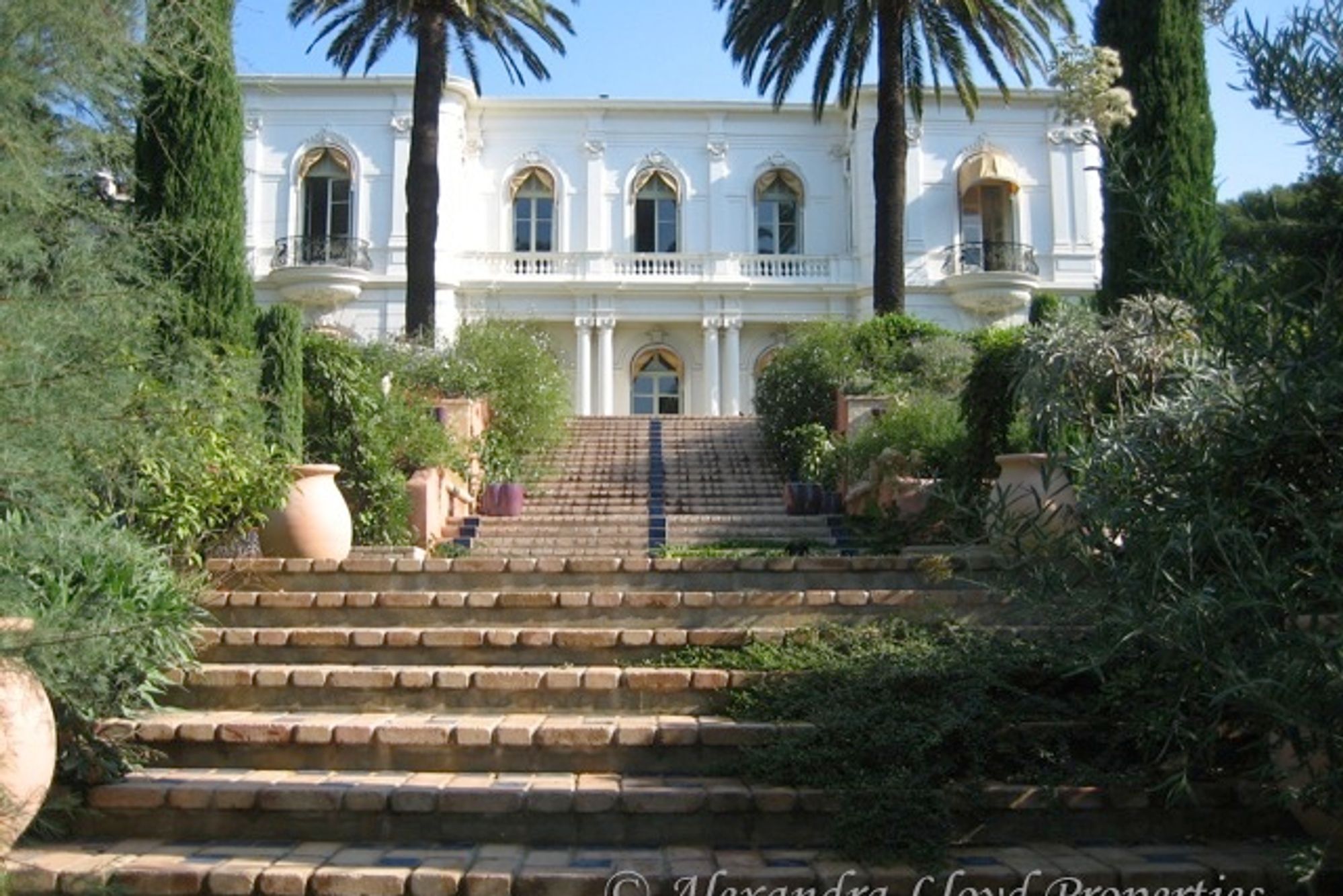 Villa Rocabella On the shore of the French Riviera stands the large and proud Villa Rocabella. This magnificent BELLE EPOQUE mansion, surrounded by about three-hectares (6 acres) park with its private beach, was built at the turn of the 20th century. Typical of the Napoleon III style, it is one of the mansions designed from the end of the 19th century by the architect H. G.TERSLING. It overlooks the sea and offers gorgeous views from each of its sides. The finely composed garden exudes a Victorian luxuriance and greatness, with its majestic palms, its scented pines and its many flower beds. The elegant combination between the mansion, the garden and the dazzling scenery contributes to the overwhelming sense of quiet and luxury. A beautiful path winding through the gardens leads to the private beach where a rocky cave provides a comfortable shelter. The very peacefulness of this shore is all that is needed to enjoy the pleasures of the sea. The excellent location of the Villa Rocabella, off the highways and entirely fenced, makes it an outstanding place where lavish receptions can indeed be held, but where quietness and privacy can also be totally preserved.